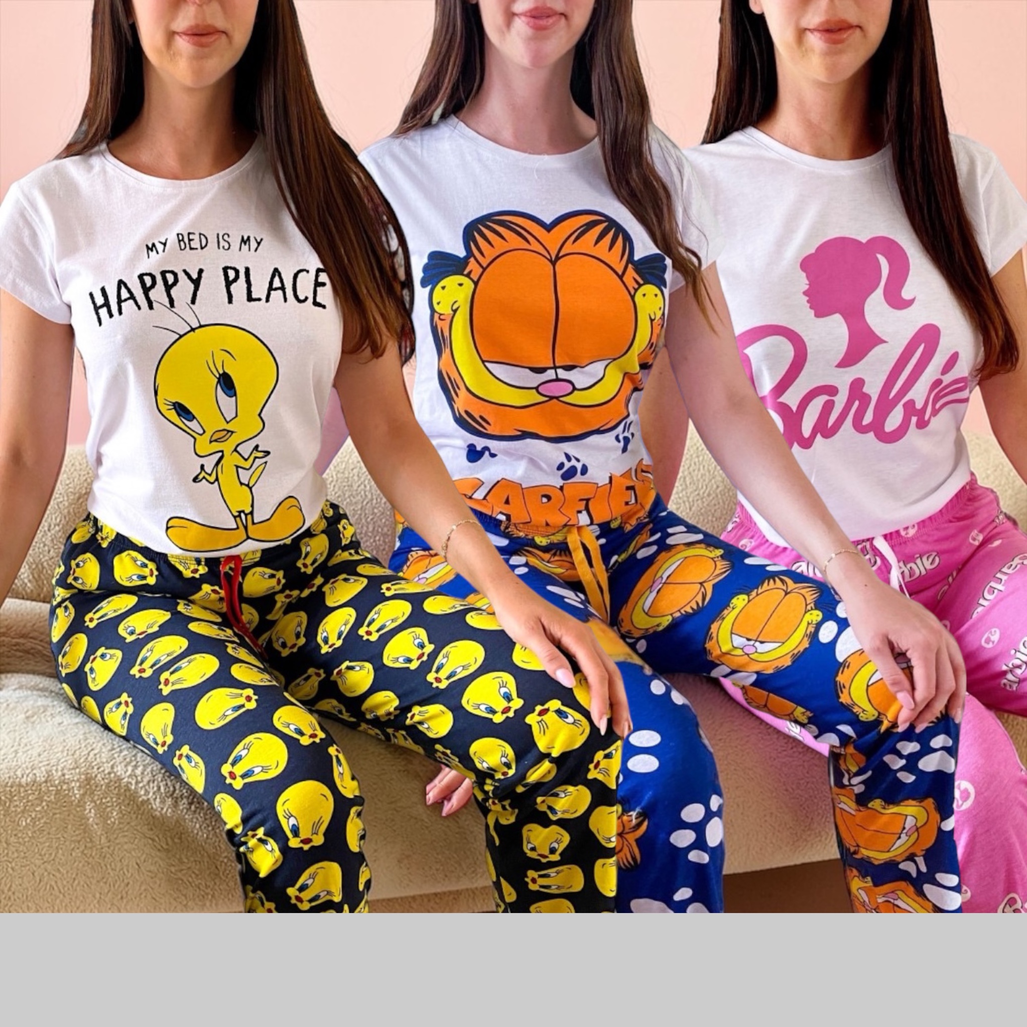 Pijama dama din bumbac moale, usor si super placut pe piele, cu imprimeu Fluffy Teddy care ii da un ..