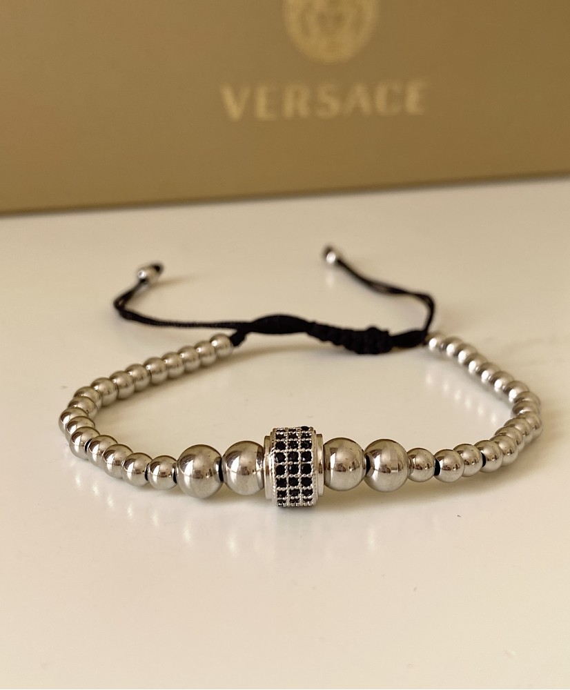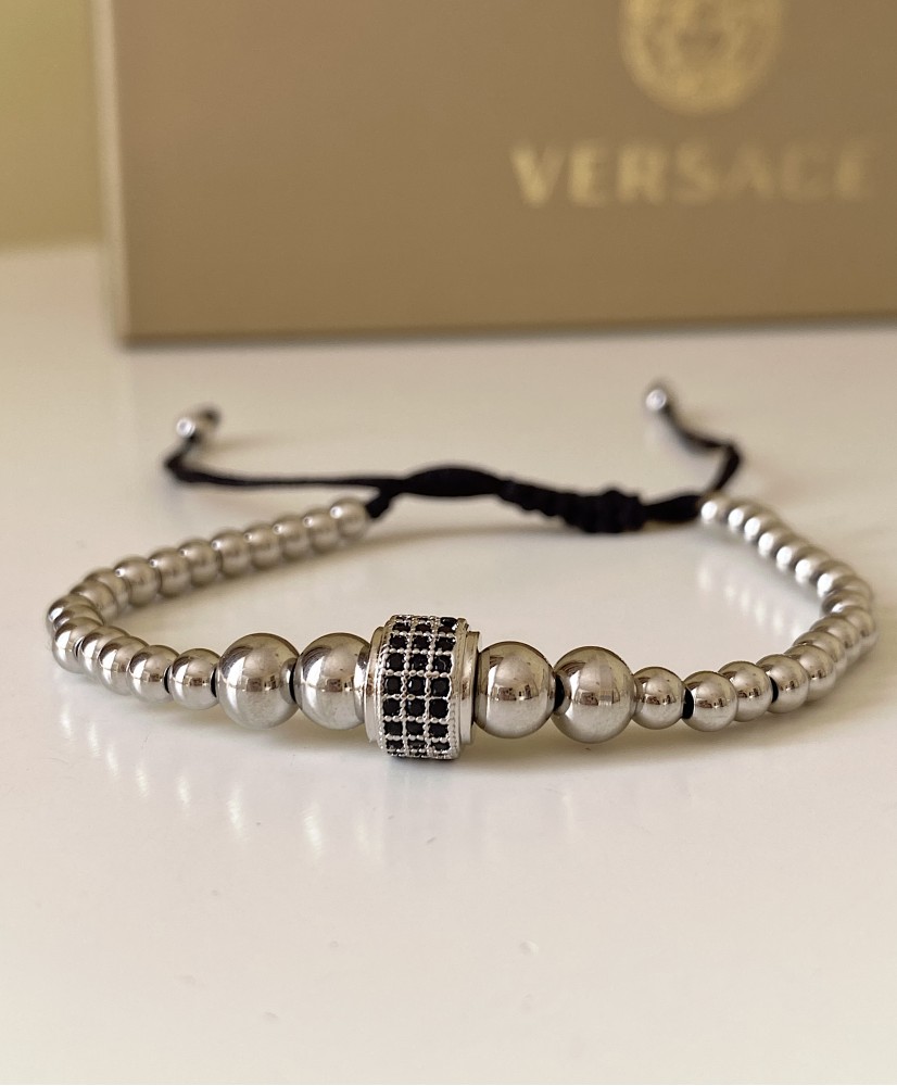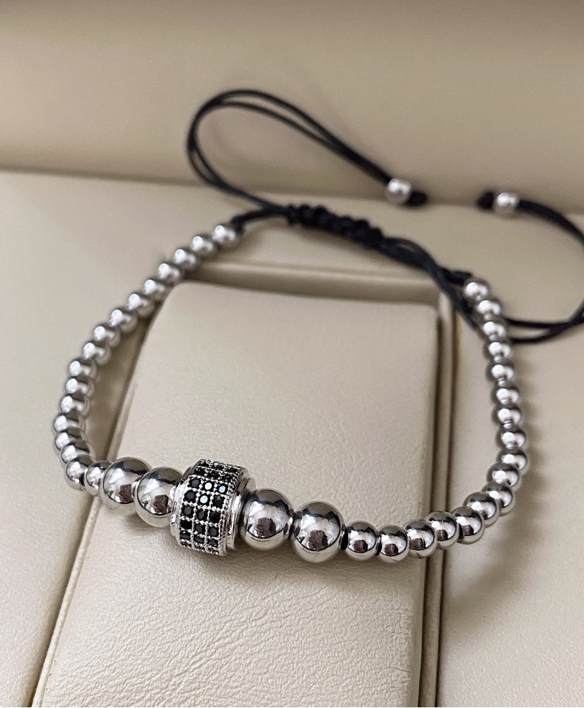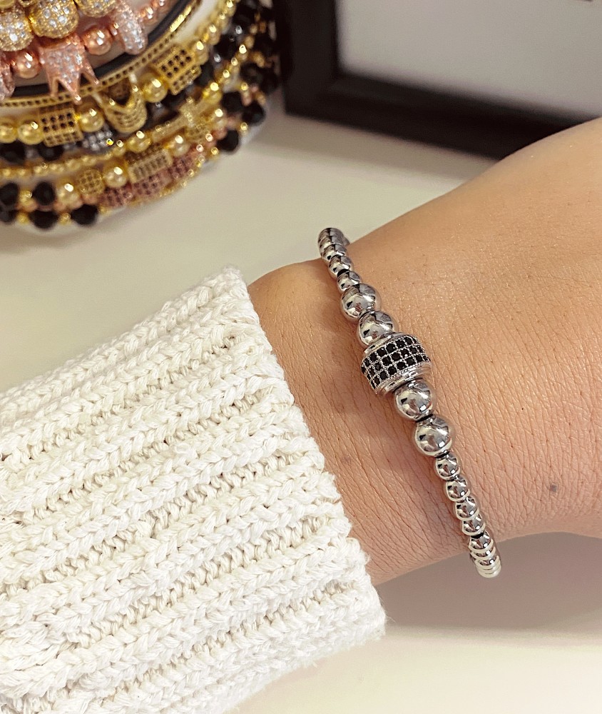 Bratara dama model deosebit cu margele argintii si biluta cu pietricele negre