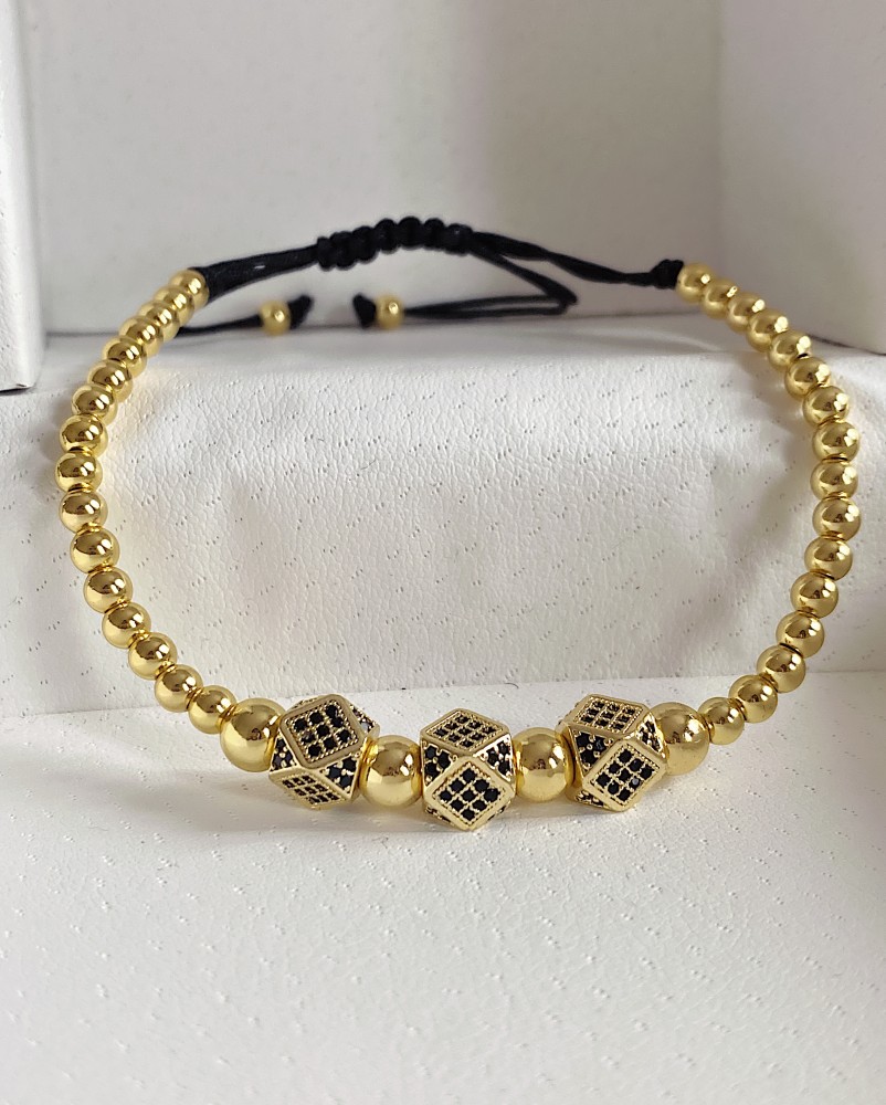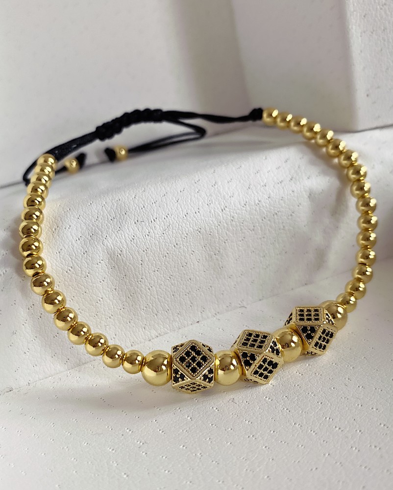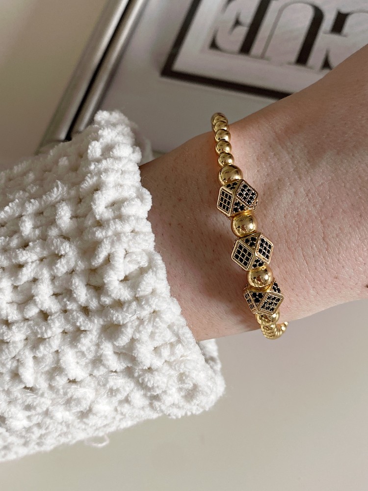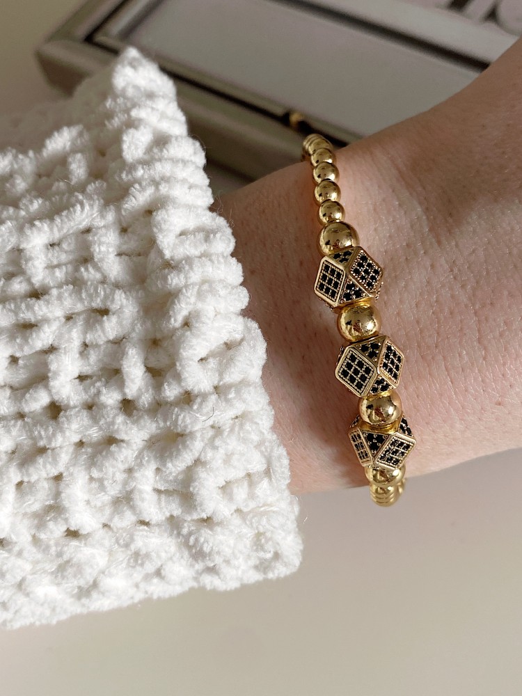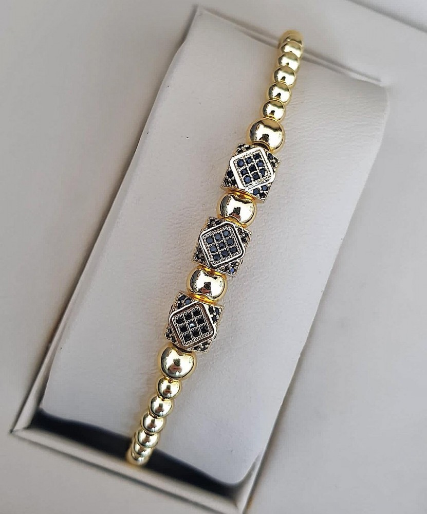 Bratara dama model deosebit cu margele aurii si 3 romburi cu pietricele negre