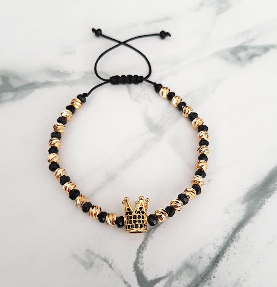 Bratara dama model deosebit cu margele aurii si negre si coroana cu petricele negre