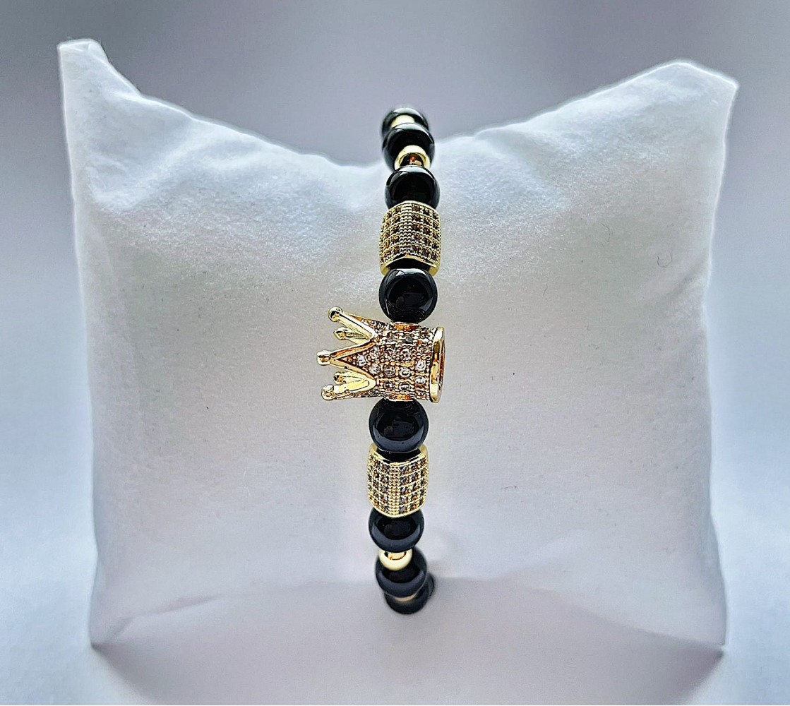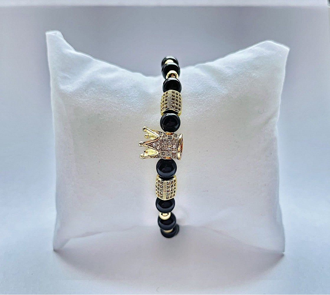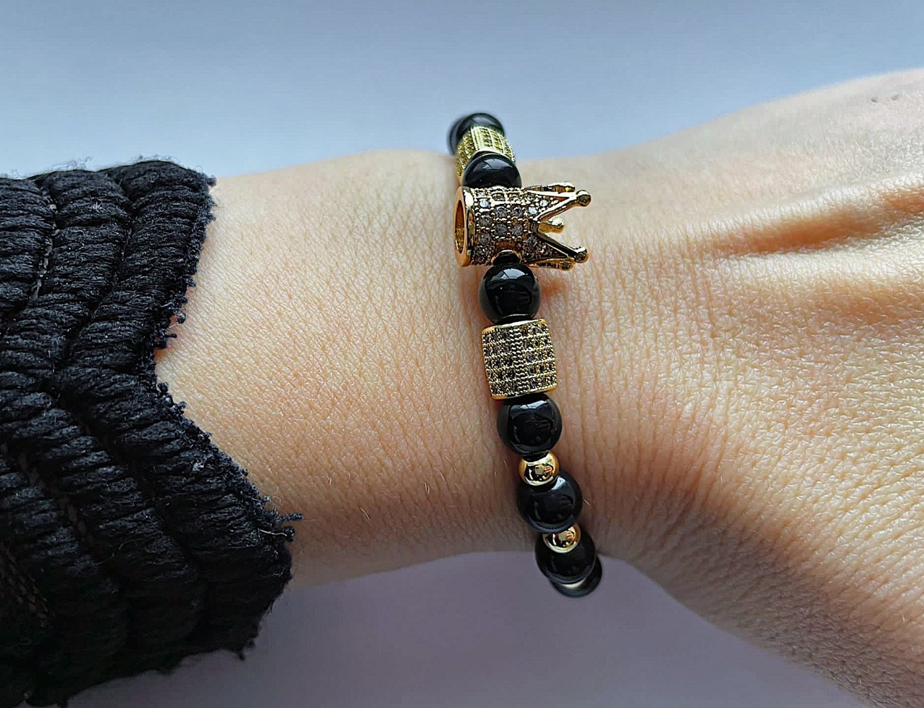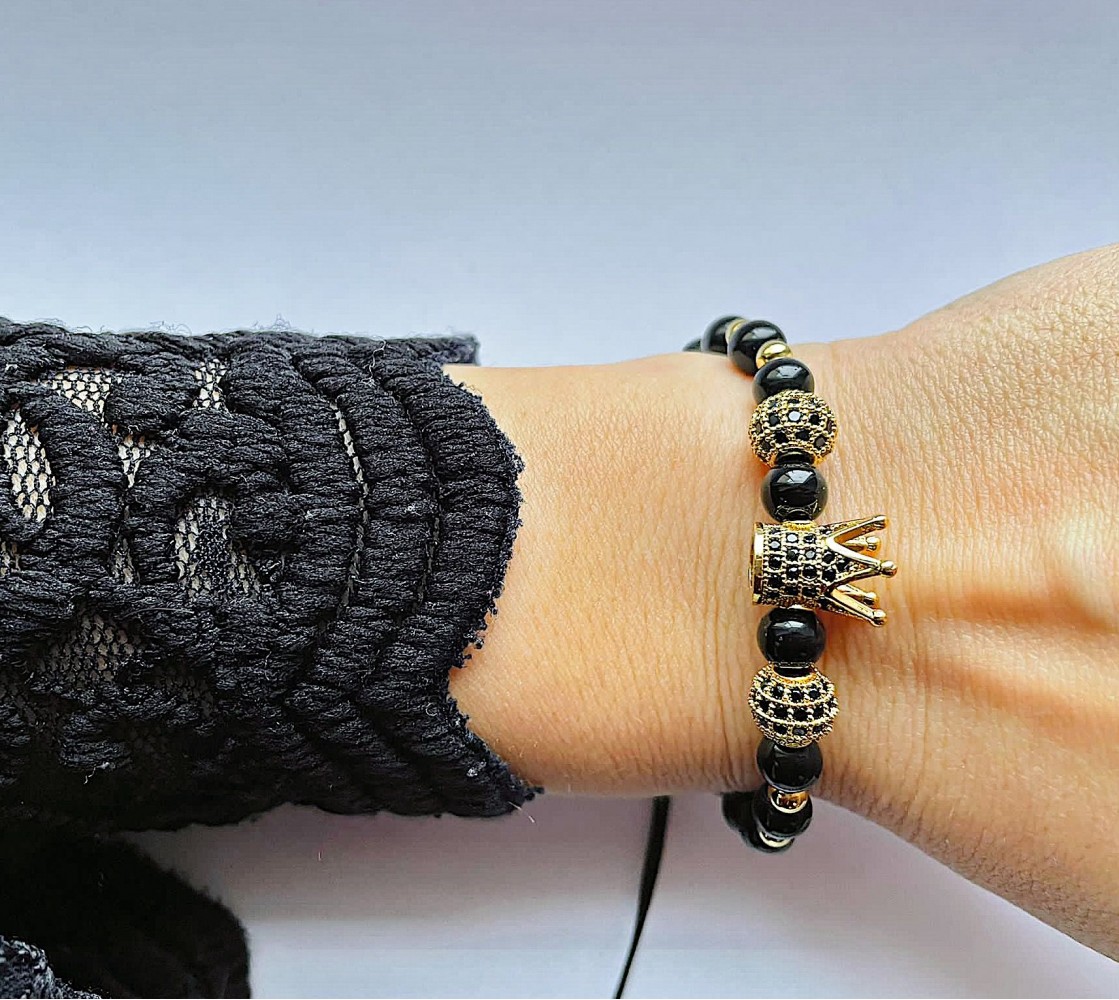 Bratara dama model deosebit cu margele aurii si negre si coroana cu pietricele negre