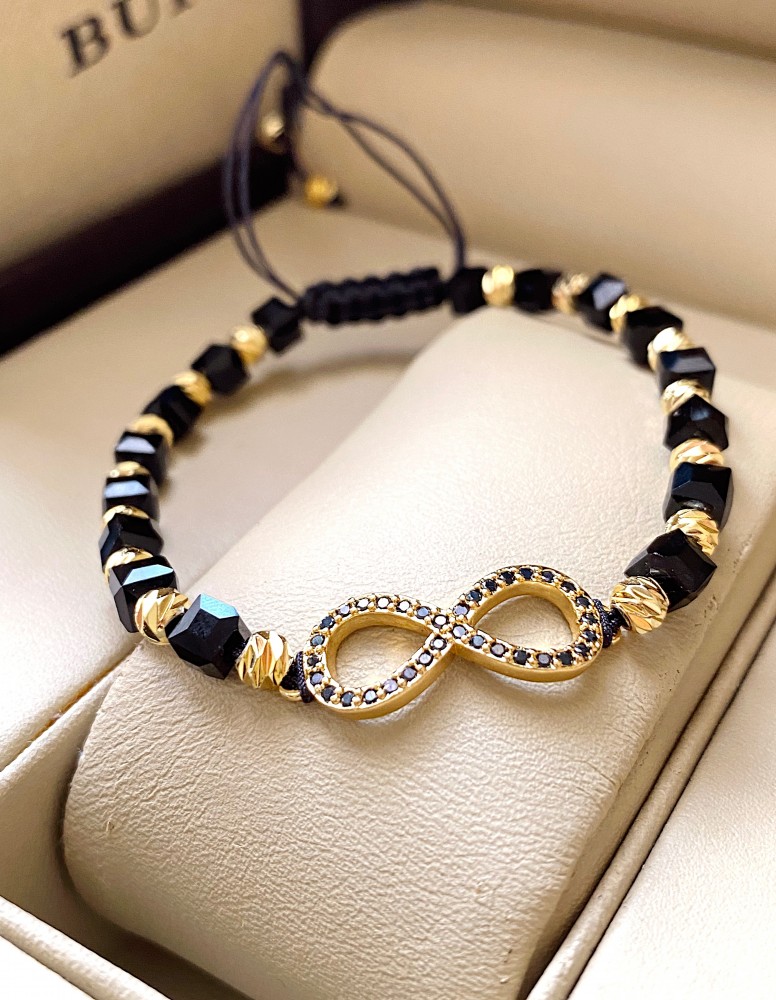 Bratara dama model deosebit cu margele negre cu auriu si infinit cu pietricele stralucitoare