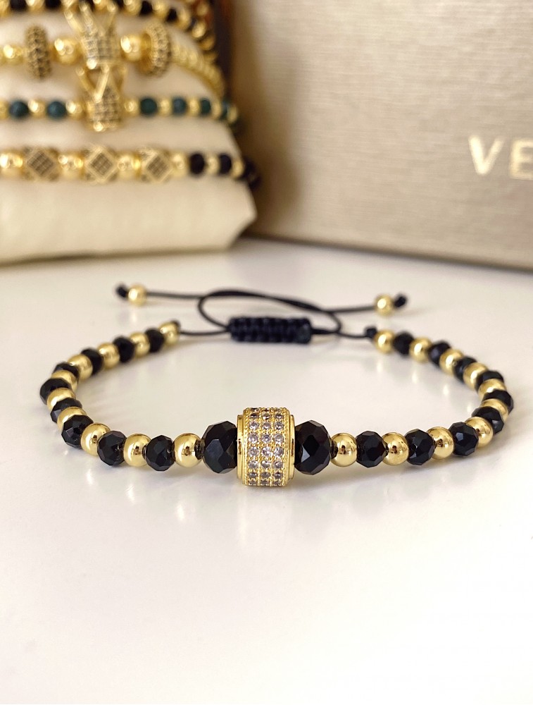 Bratara dama model deosebit cu margele negre si aurii si biluta