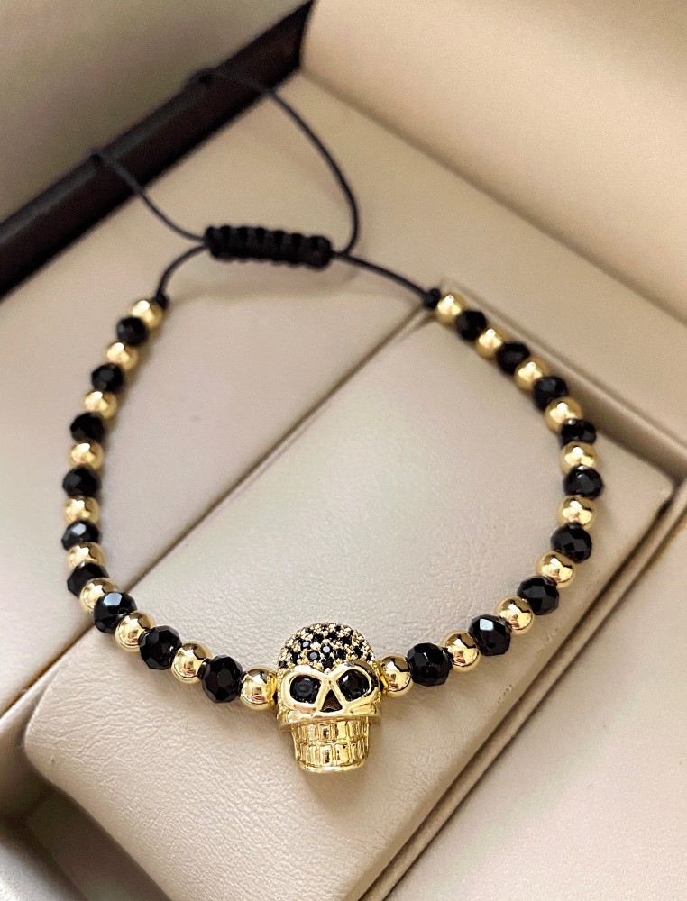 Bratara dama model deosebit cu margele negre si aurii si craniu