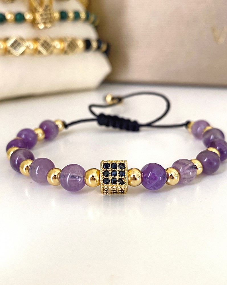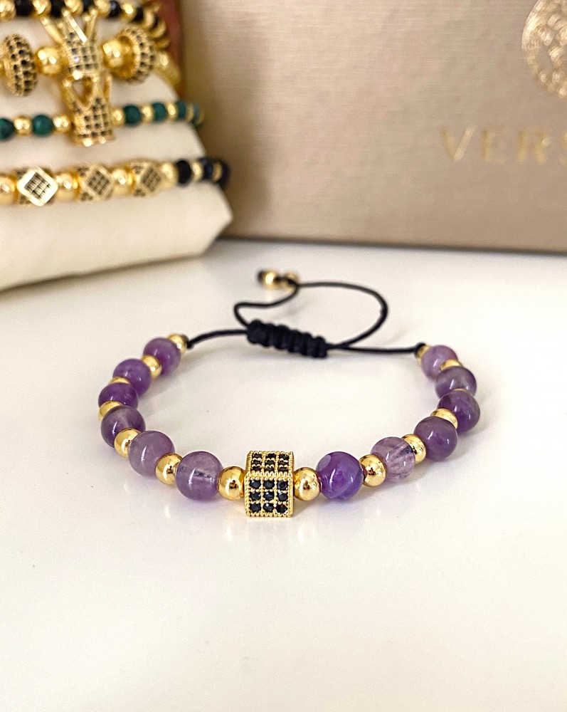 Bratara dama model deosebit cu piatra semipretioasa Agata mov si design special patrat