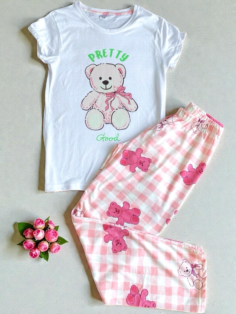 Pijama dama din bumbac cu imprimeu ursulet – Pretty Good