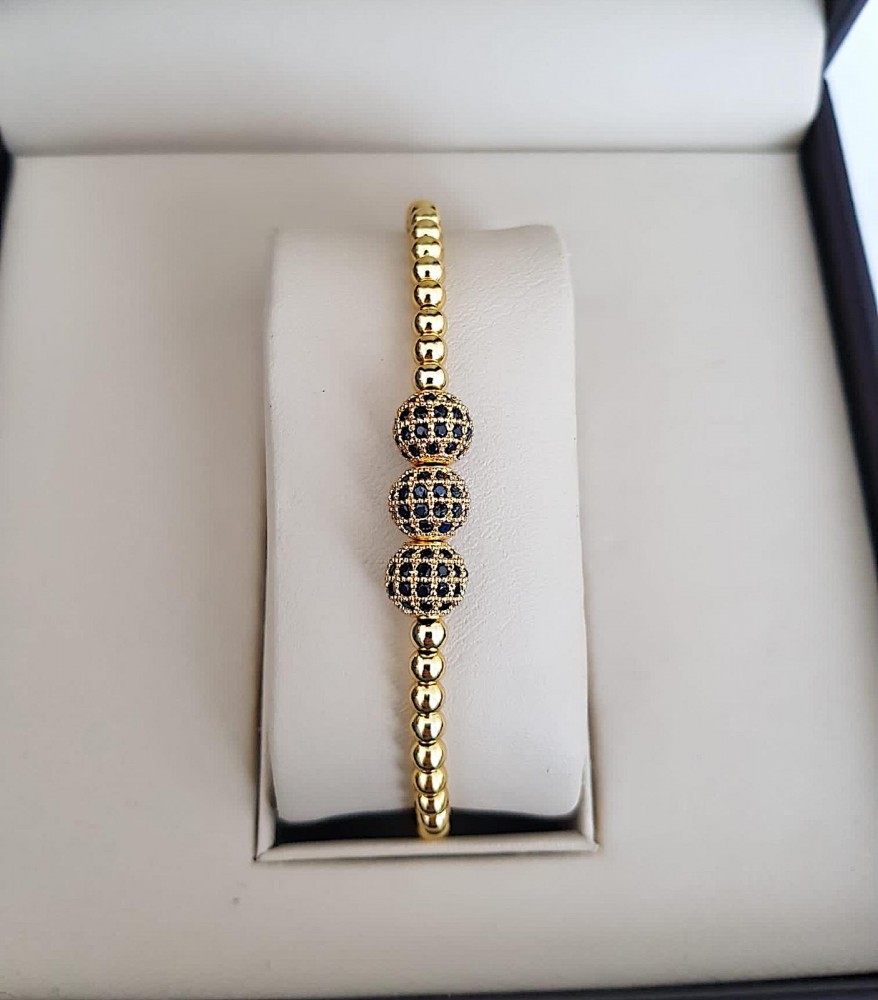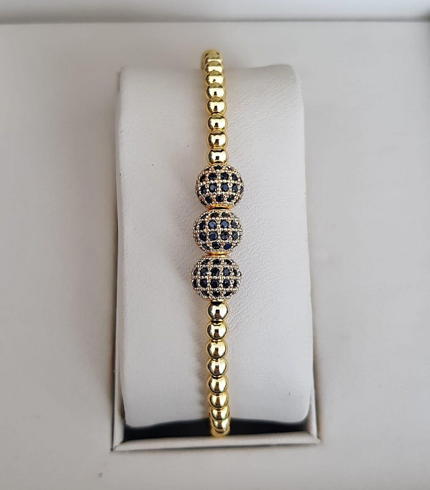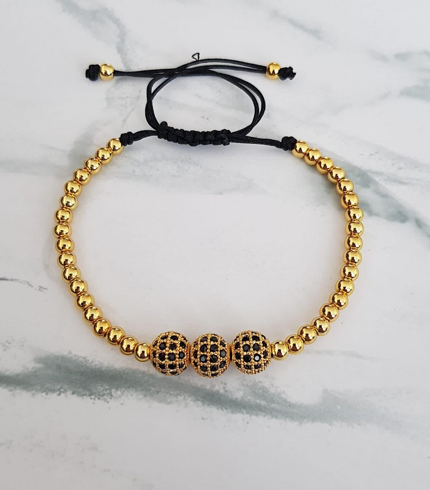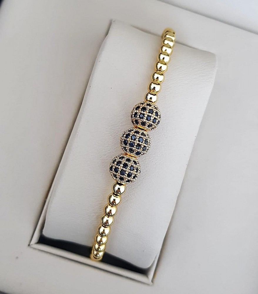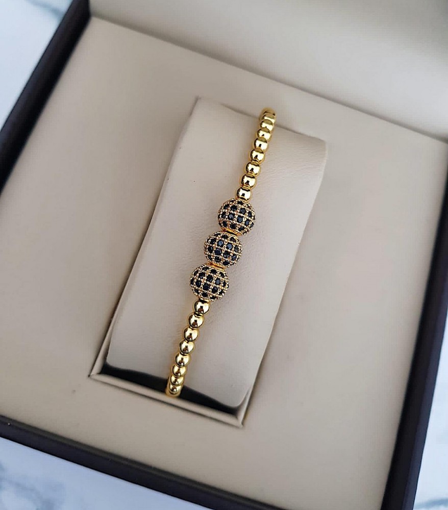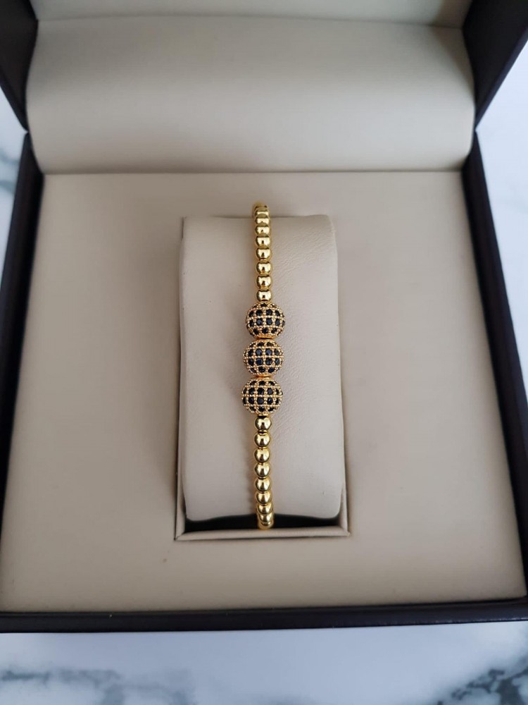 Bratara dama aurie model deosebit cu 3 margele aurii si pietricele negre
