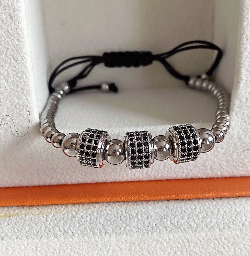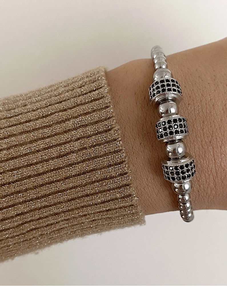 Bratara dama model deosebit cu margele argintii si cercuri cu pietricele negre