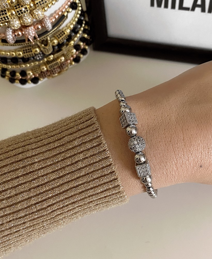 Etichete: Bratara dama model deosebit cu margele argintii si forme cu pietricele stralucitoare, ,