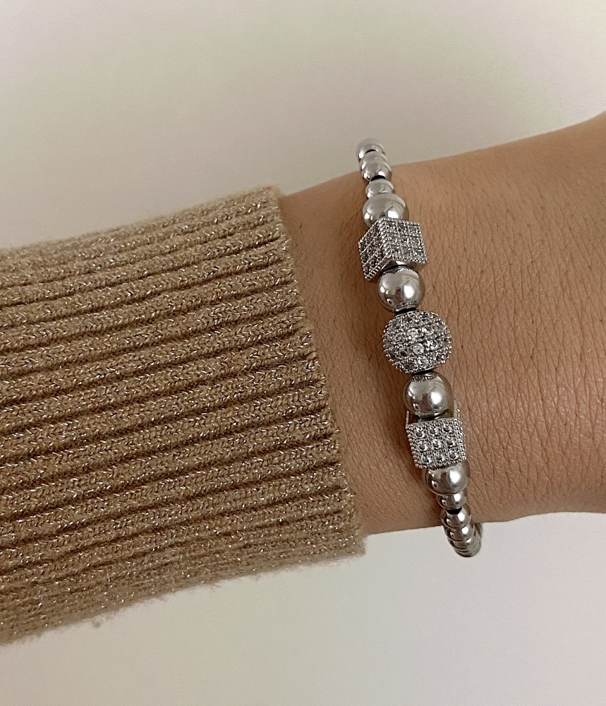 Bratara dama model deosebit cu margele argintii si forme cu pietricele stralucitoare