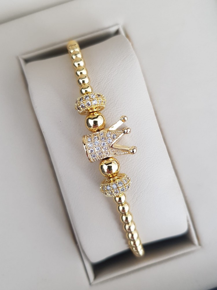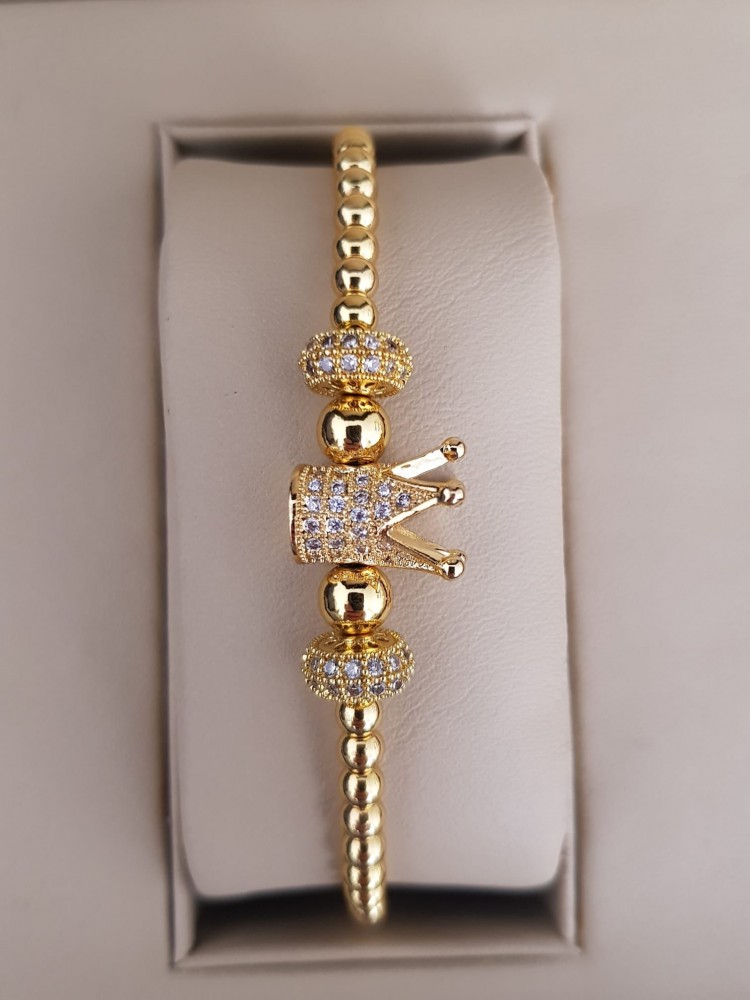 Bratara dama model deosebit cu margele aurii si coroana cu pietricele stralucitoare