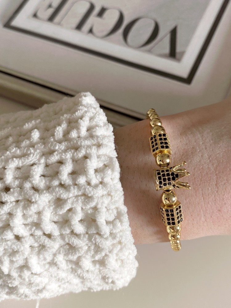 Bratara dama model deosebit cu margele aurii si coroana cu pietricele stralucitoare