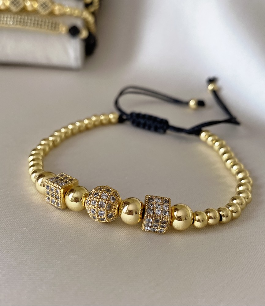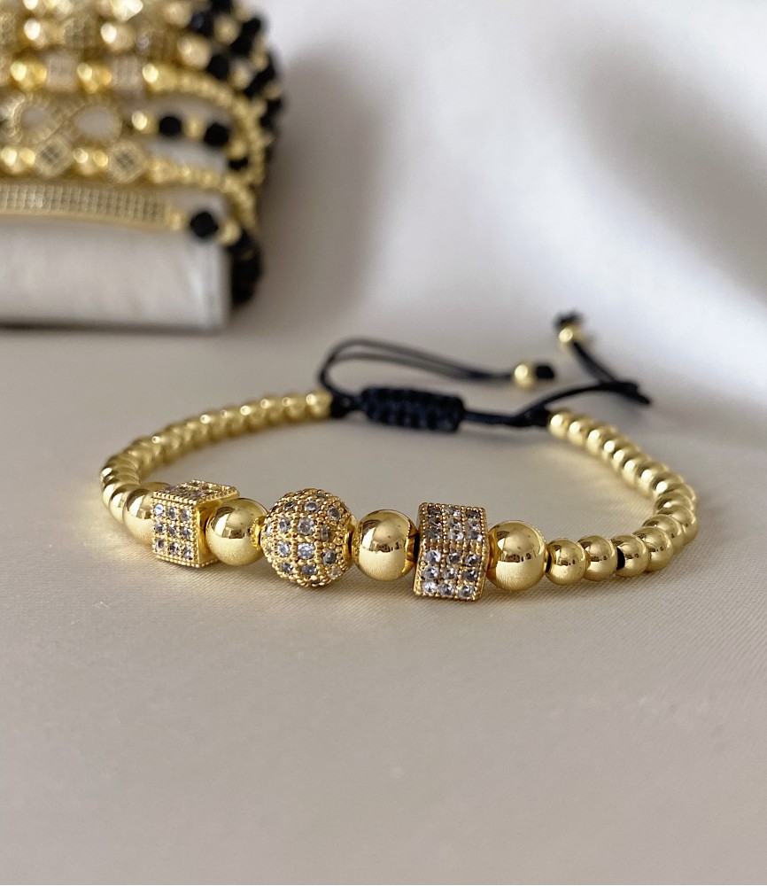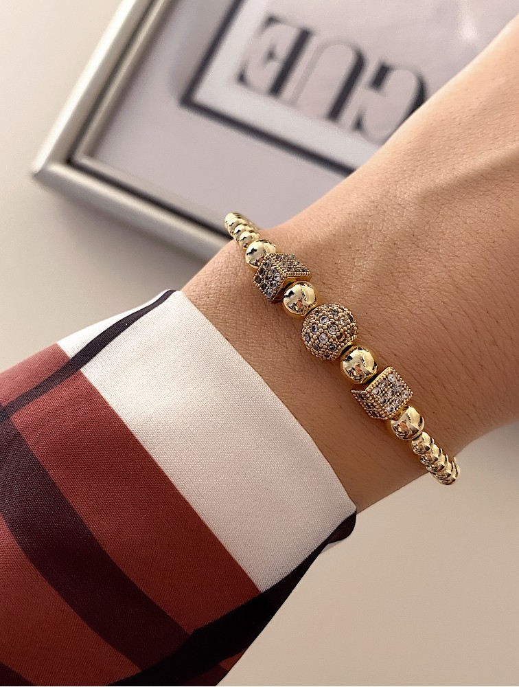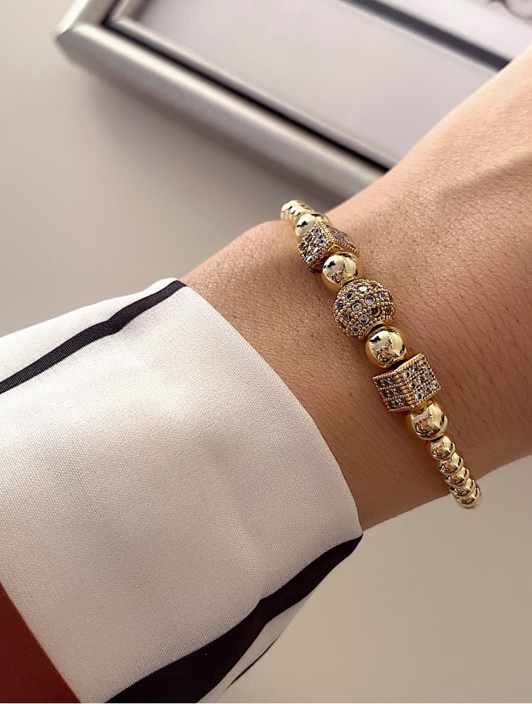 Bratara dama model deosebit cu margele aurii si forme cu pietricele albe
