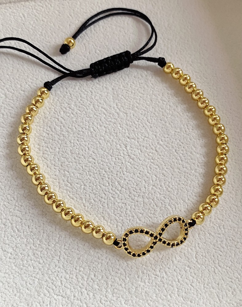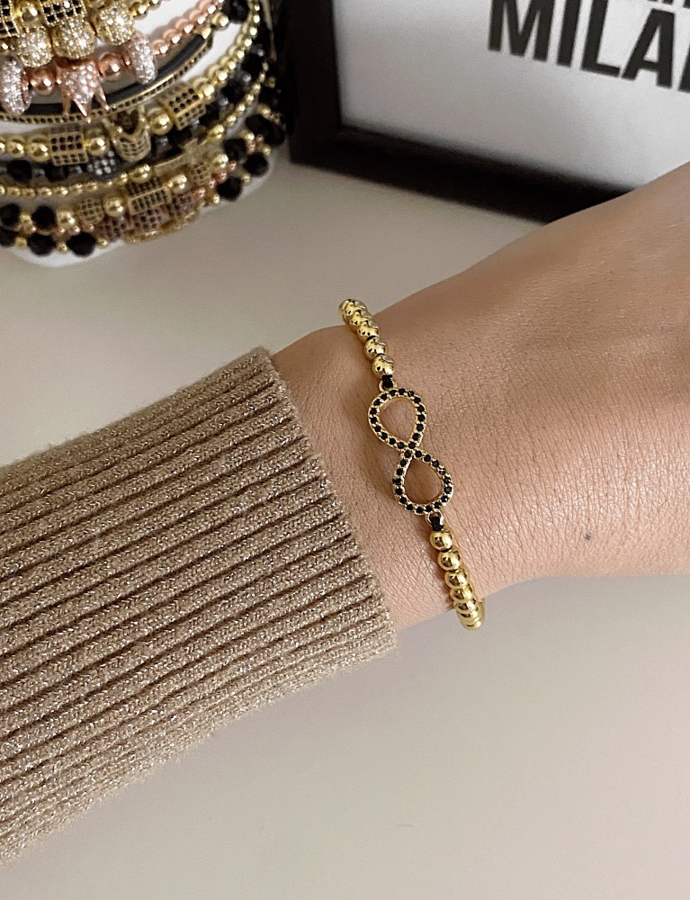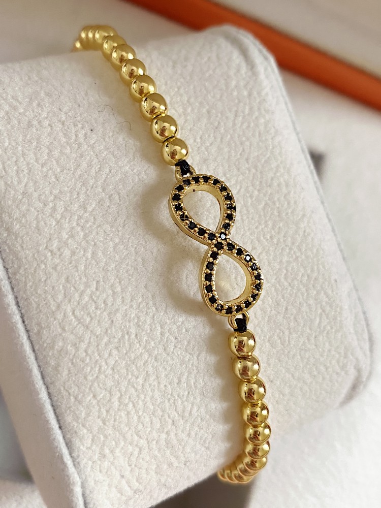Bratara dama model deosebit cu margele aurii si infinit cu pietricele negre