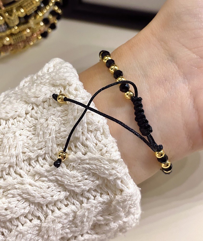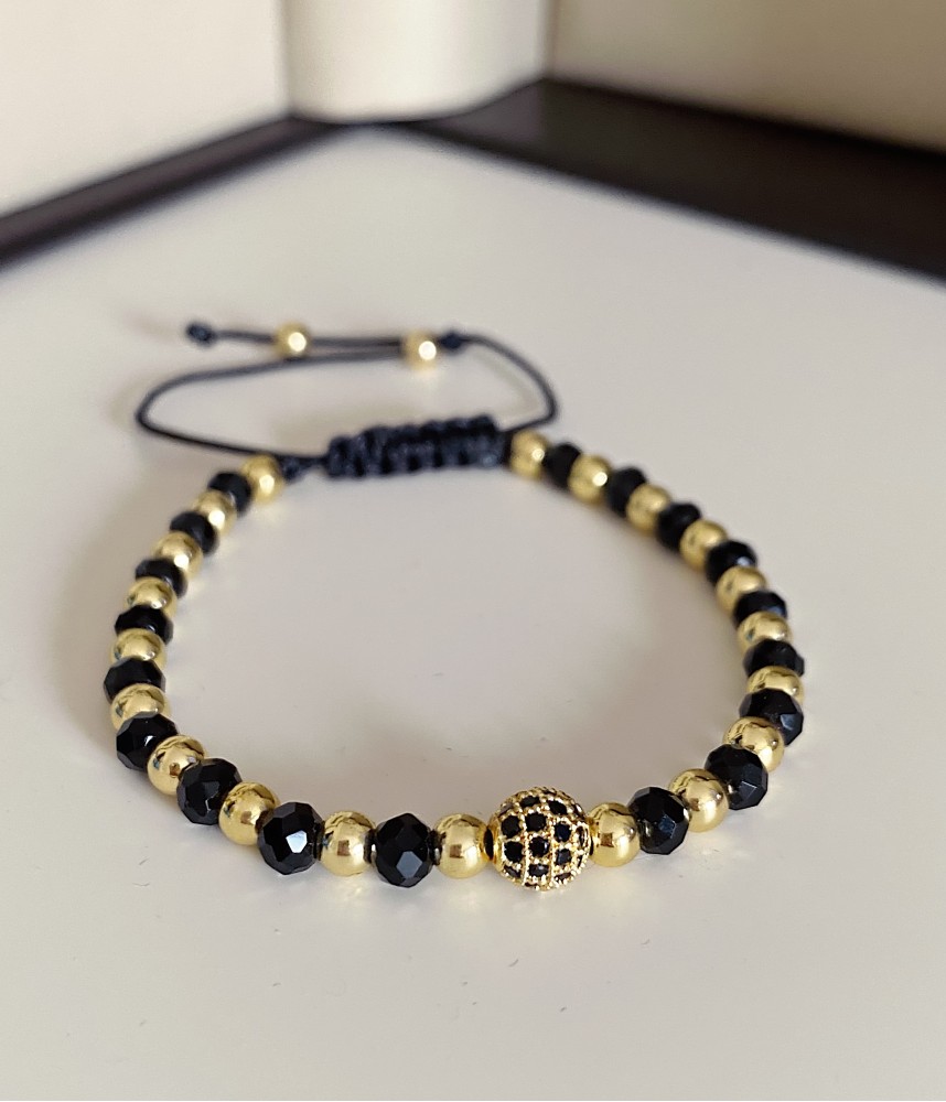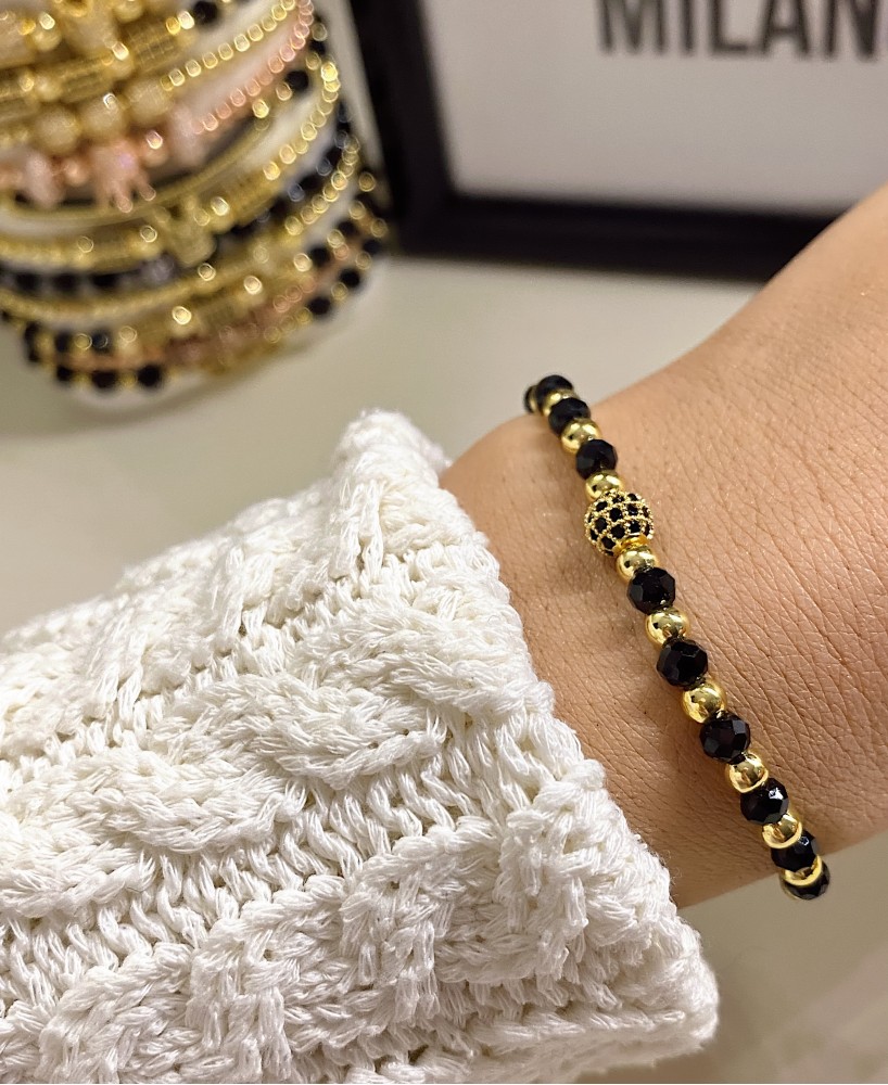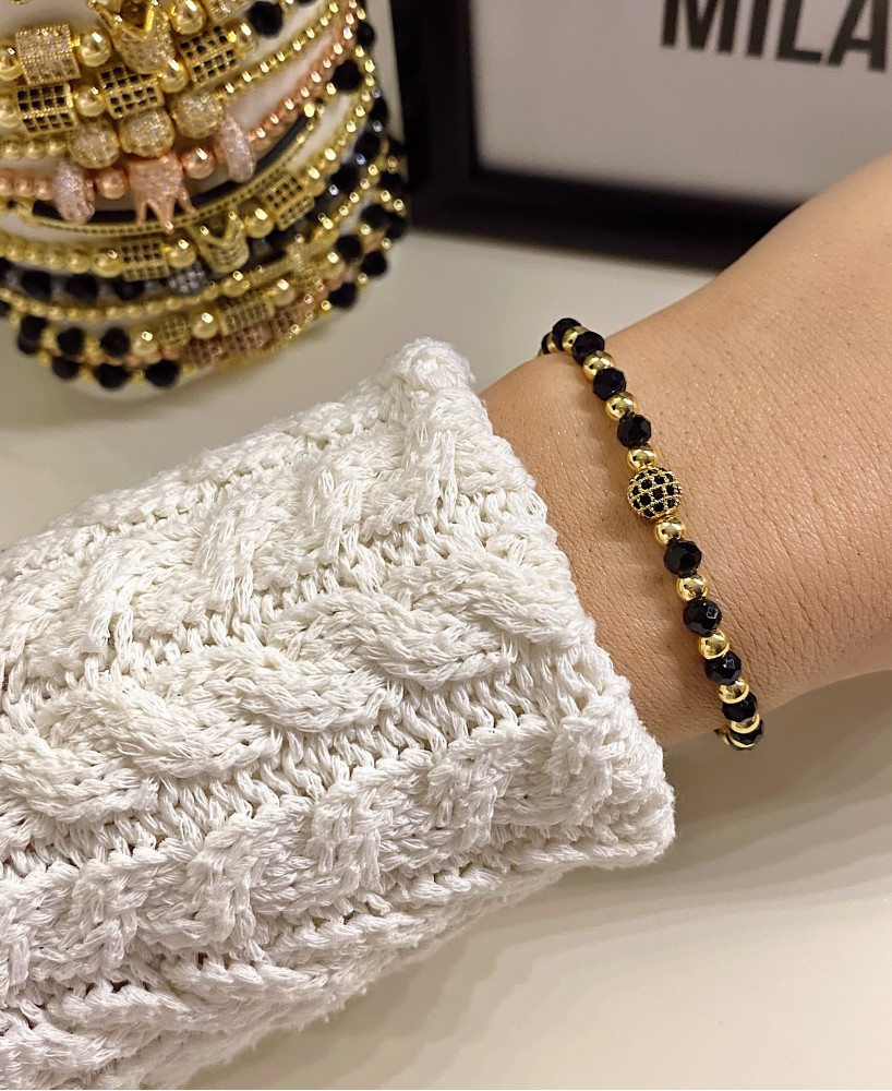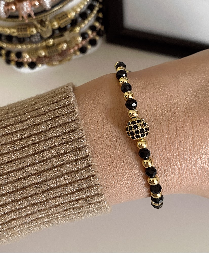Bratara dama model deosebit cu margele aurii si negre si biluta cu pietricele negre