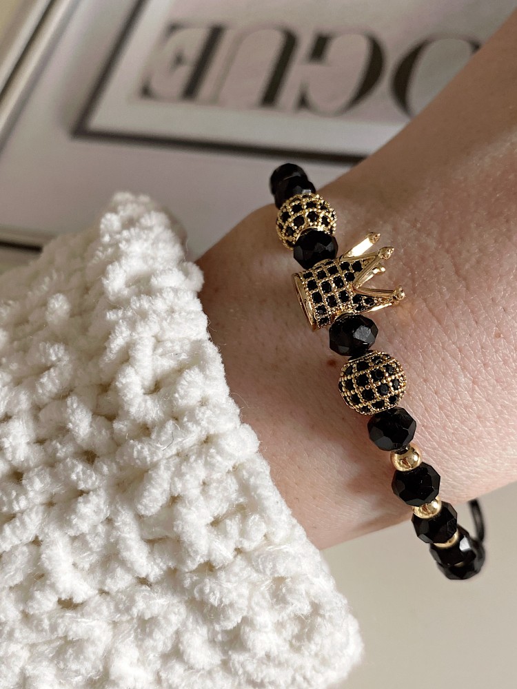 Bratara dama model deosebit cu margele aurii si negre si coroana cu pietricele negre