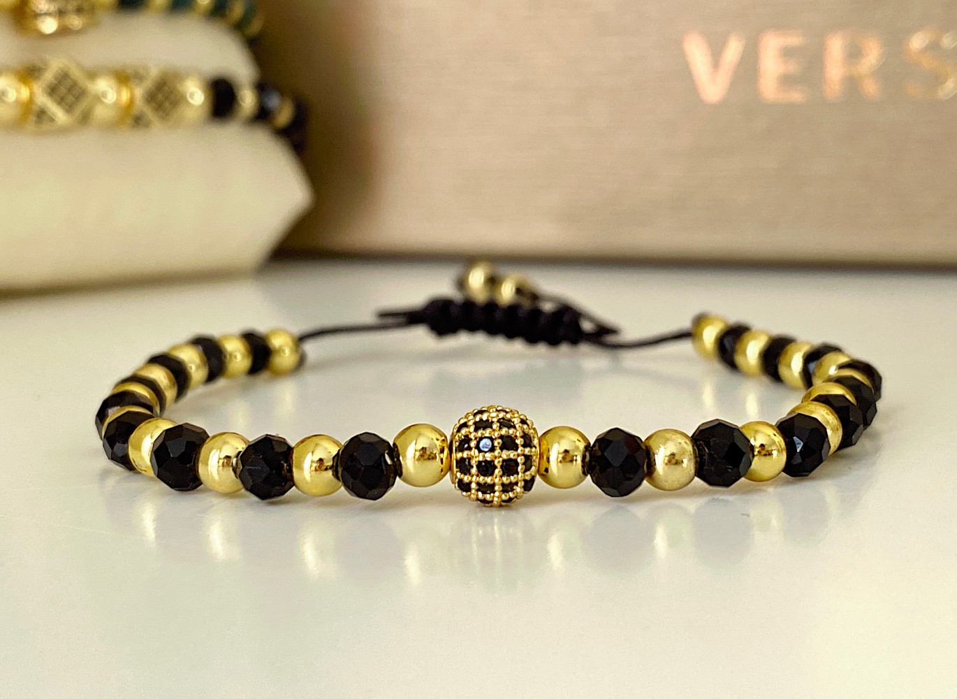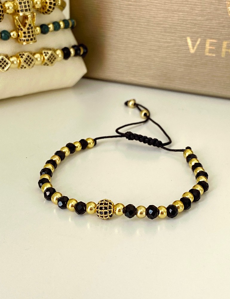 Bratara dama model deosebit cu margele aurii si negre si design biluta