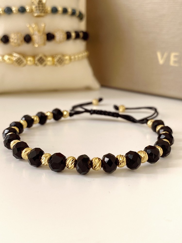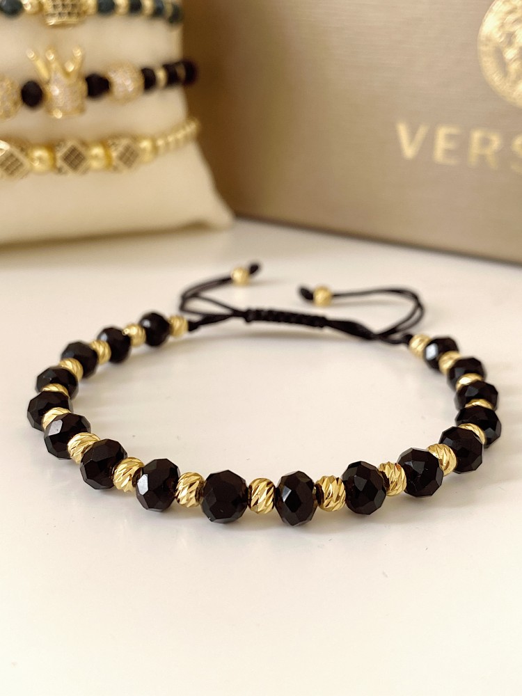 Bratara dama model deosebit cu margele aurii si negre simpla