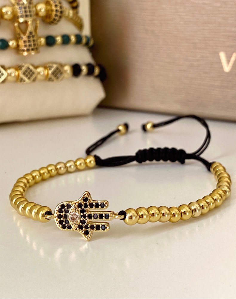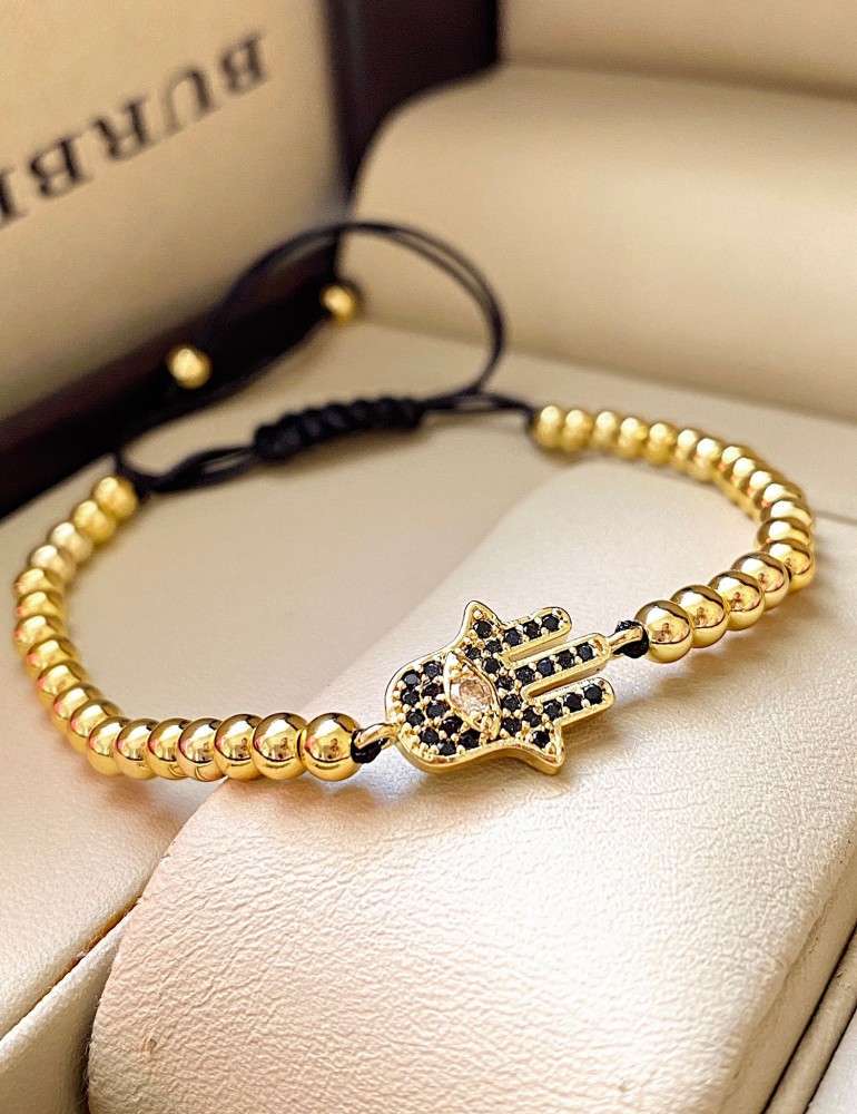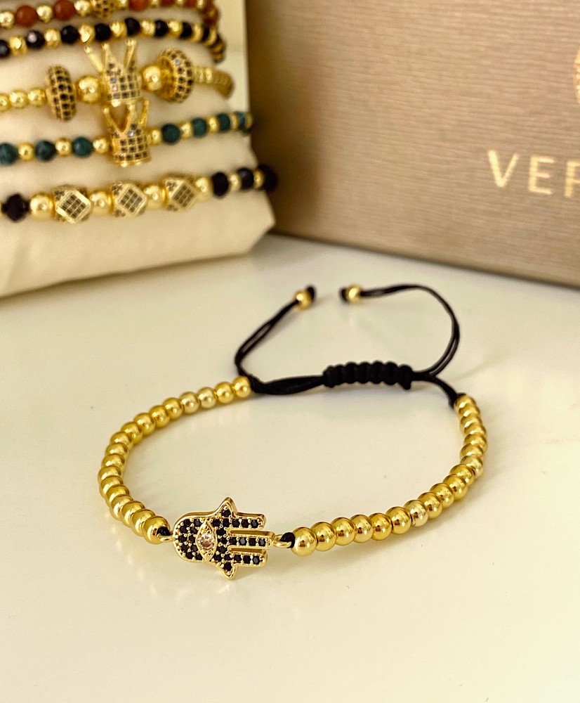 Bratara dama model deosebit cu margele aurii si palma cu pietricele negre