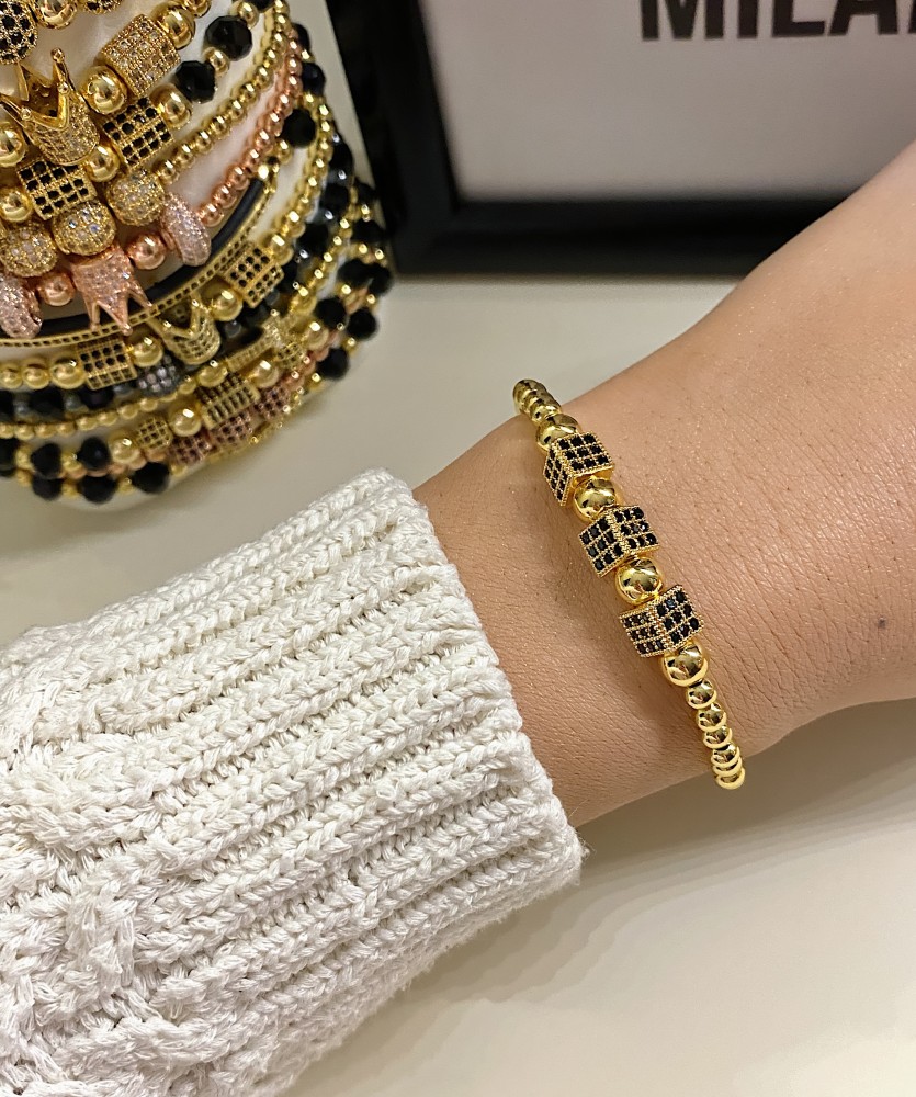 Bratara dama model deosebit cu margele aurii si patrate cu pietricele negre