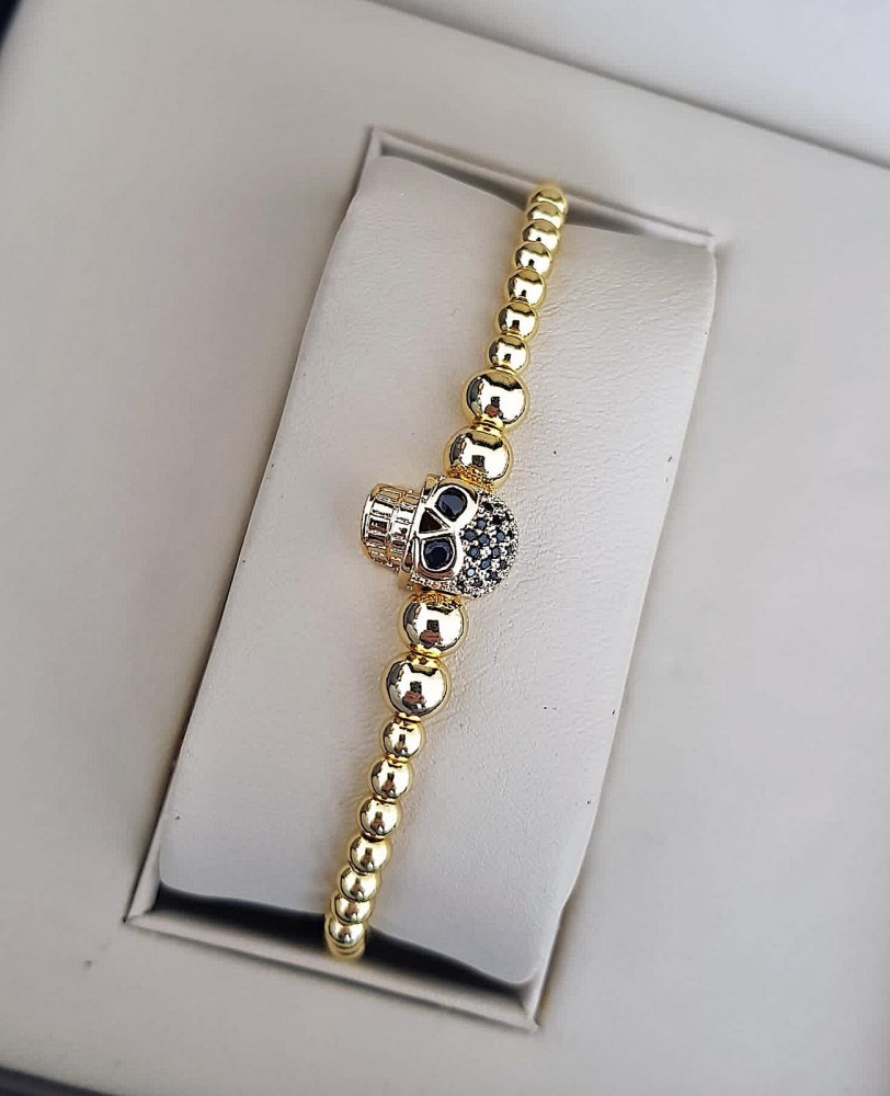 Bratara dama model deosebit cu margele aurii si skull cu pietricele negre