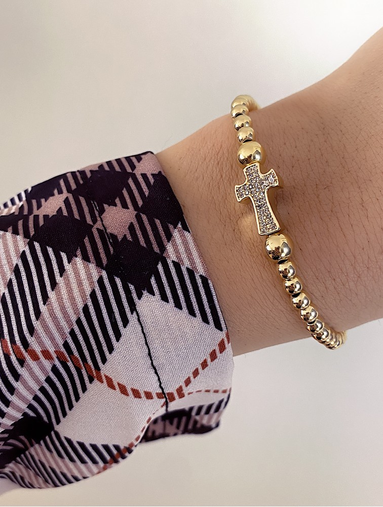 Bratara dama model deosebit cu margele aurii sicruce cu pietricele albe