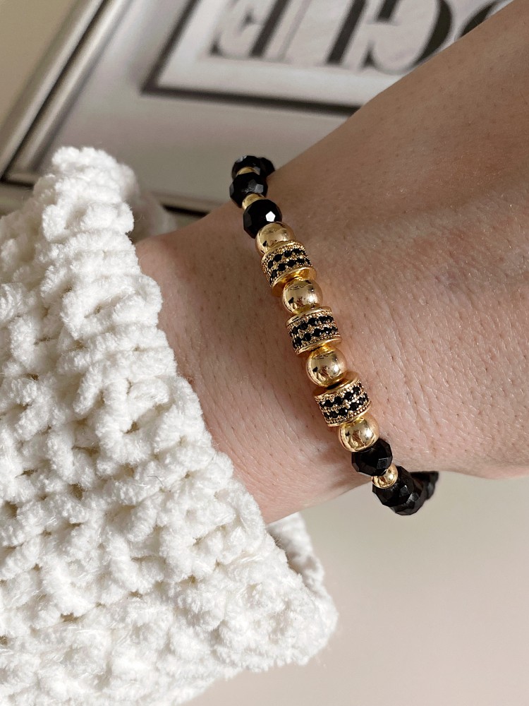 Bratara dama model deosebit cu margele negre si 3 cercuri cu pietricele negre