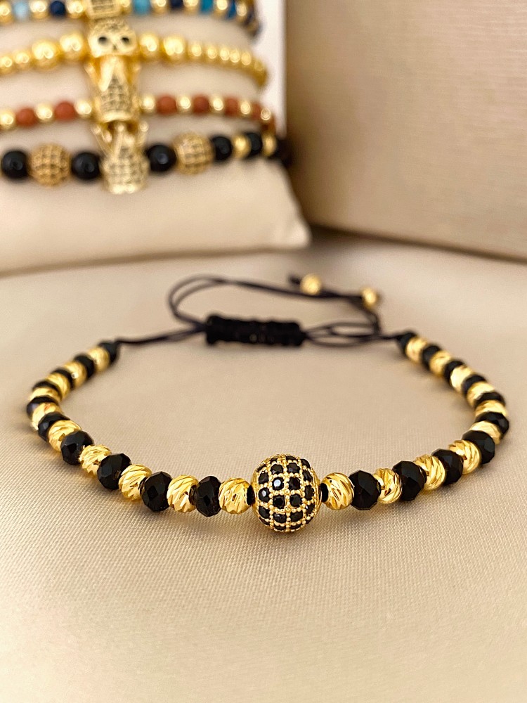 Bratara dama model deosebit cu margele negre si aurii si biluta