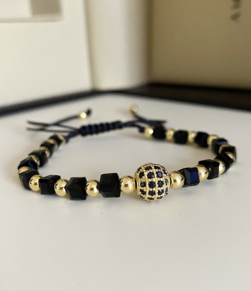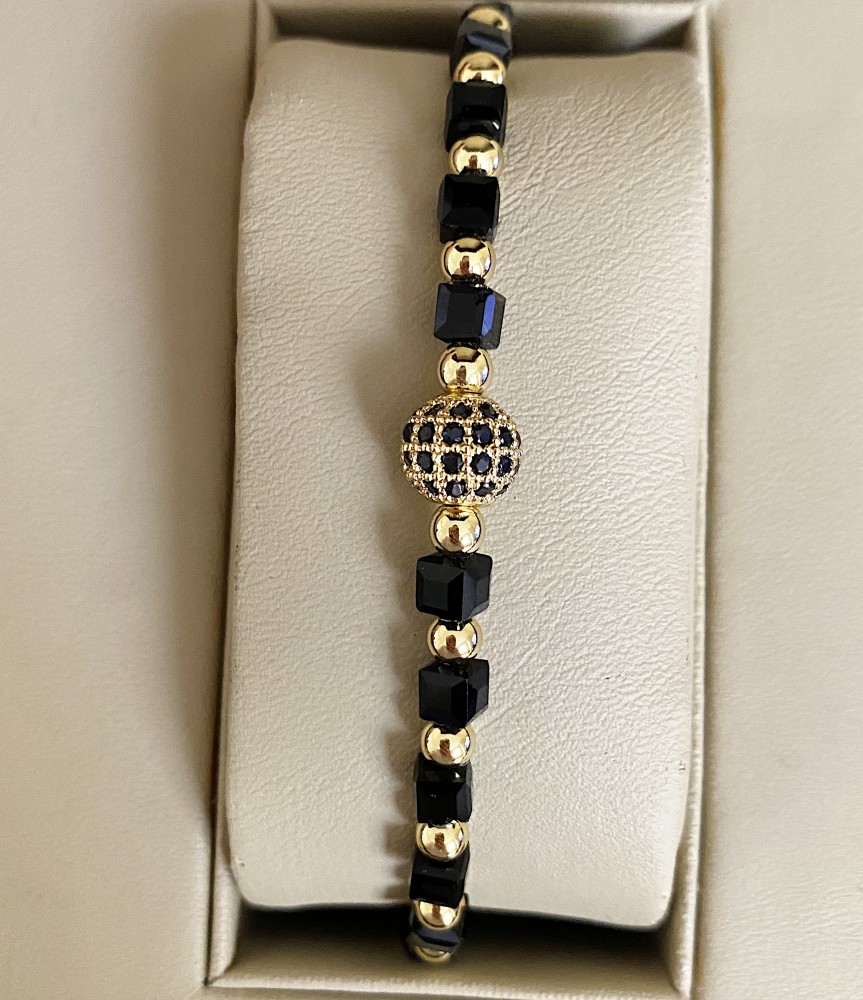 Bratara dama model deosebit cu margele negre si biluta cu pietricele negre