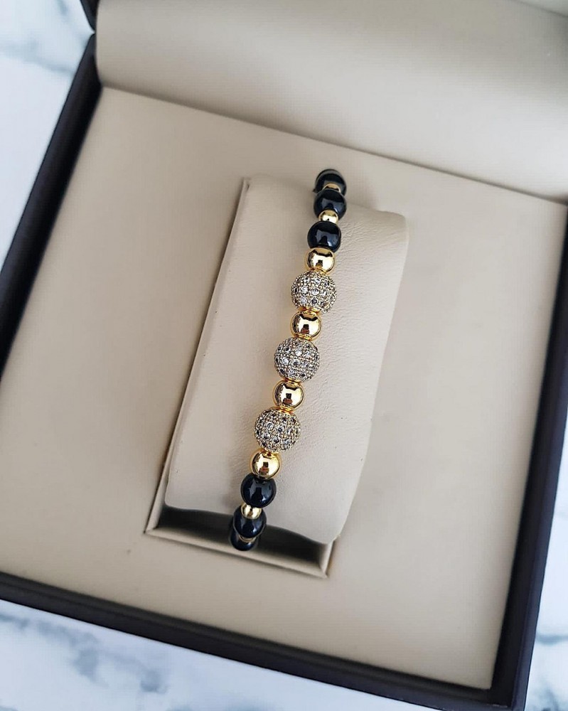 Bratara dama model deosebit cu margele negre si bilute cu pietricele stralucitoare