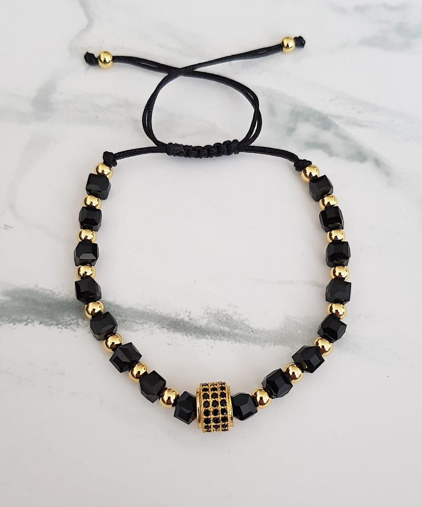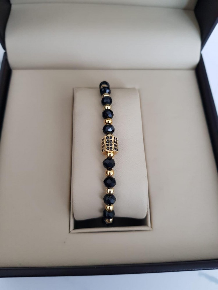 Bratara dama model deosebit cu margele negre si cerc cu pietricele negre