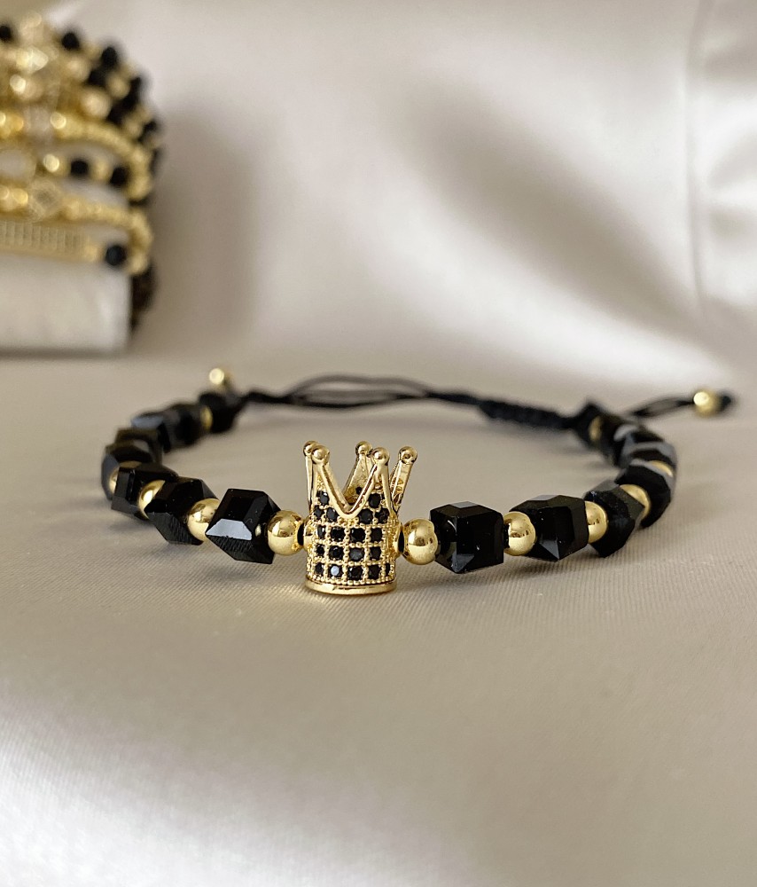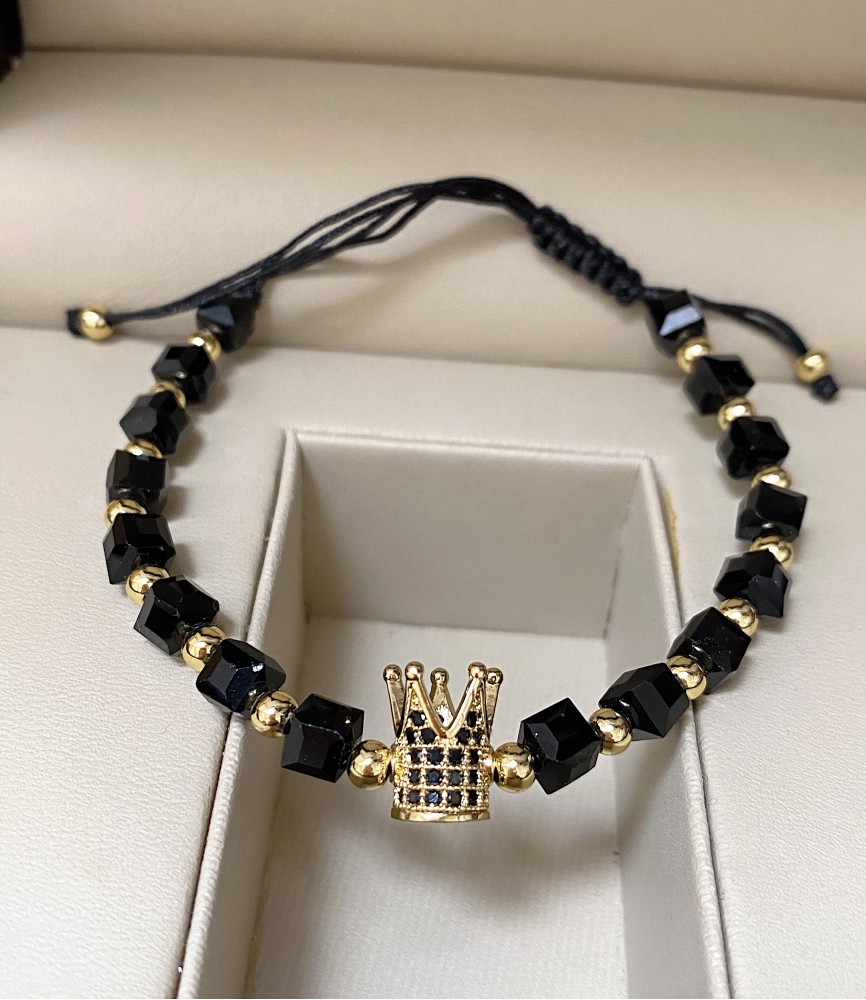Bratara dama model deosebit cu margele negre si coroana cu pietricele negre