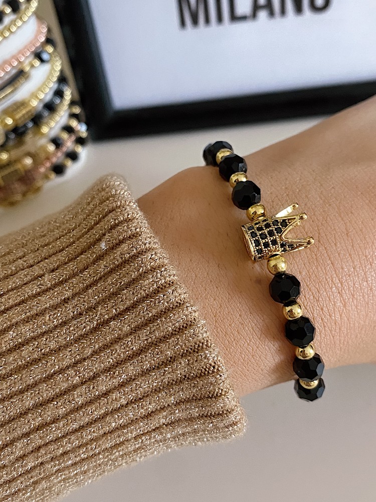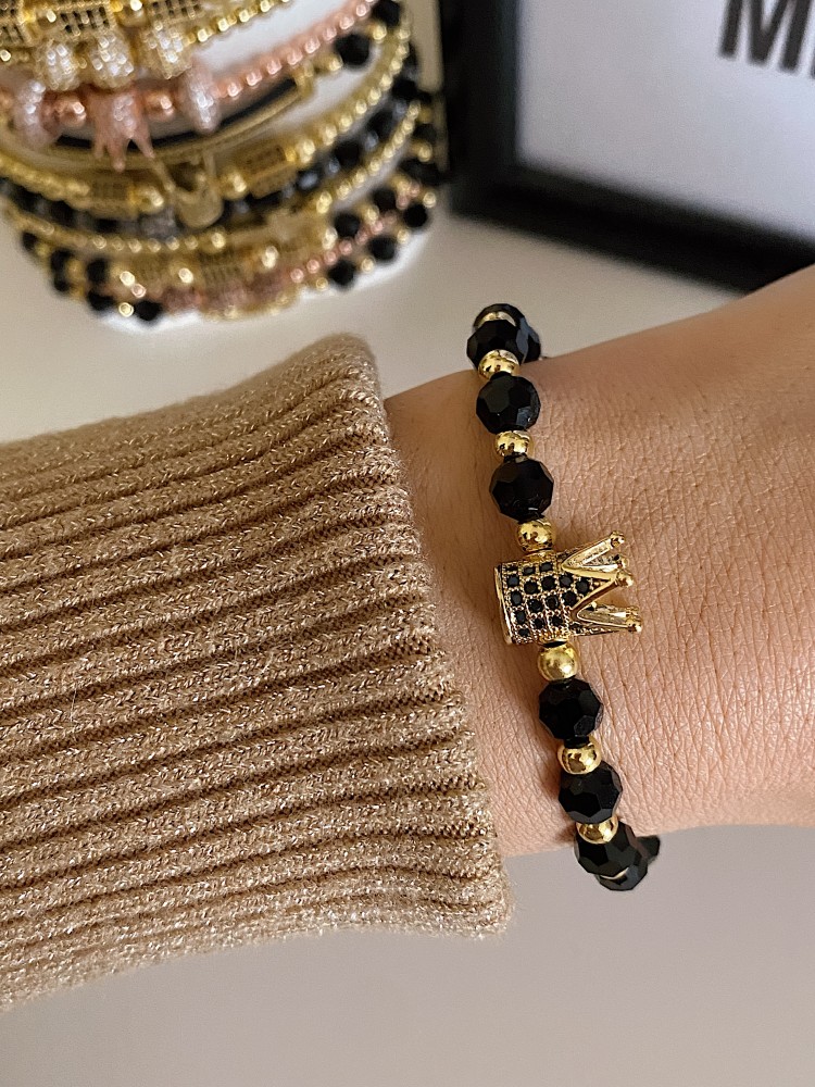 Bratara dama model deosebit cu margele negre si coroana cu pietricele negre