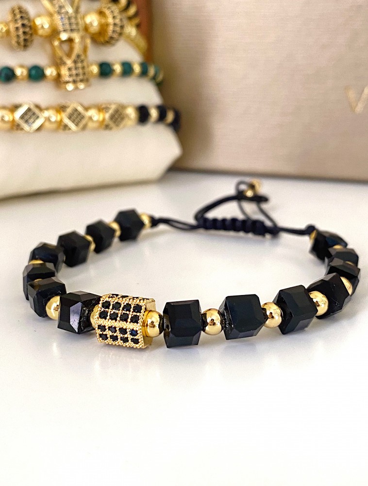 Bratara dama model deosebit cu margele negre si forma geometrica cu pietricele negre