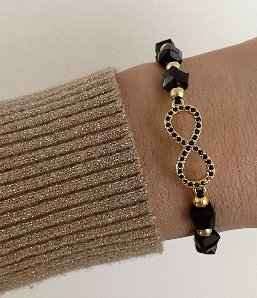 Bratara dama model deosebit cu margele negre si infinit cu pietricele negre