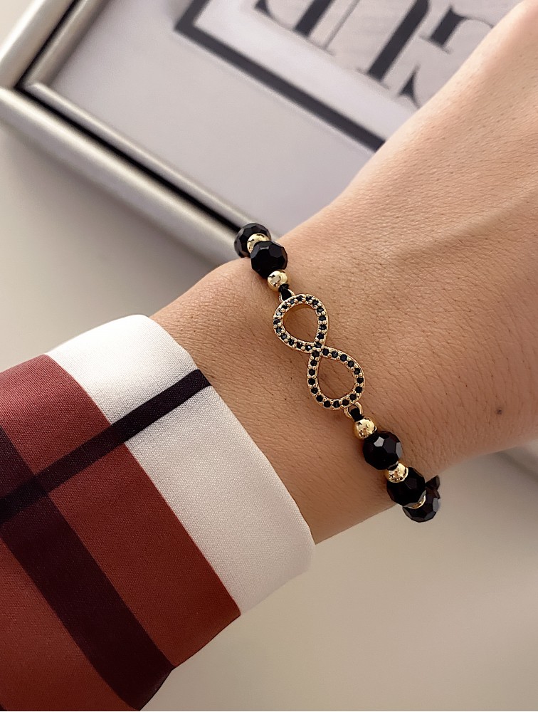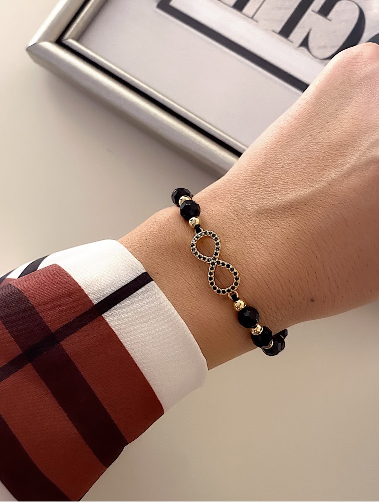 Etichete: Bratara dama model deosebit cu margele negre si infinit cu pietricele stralucitoare, ,