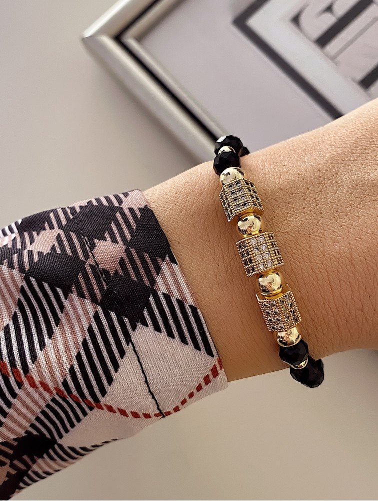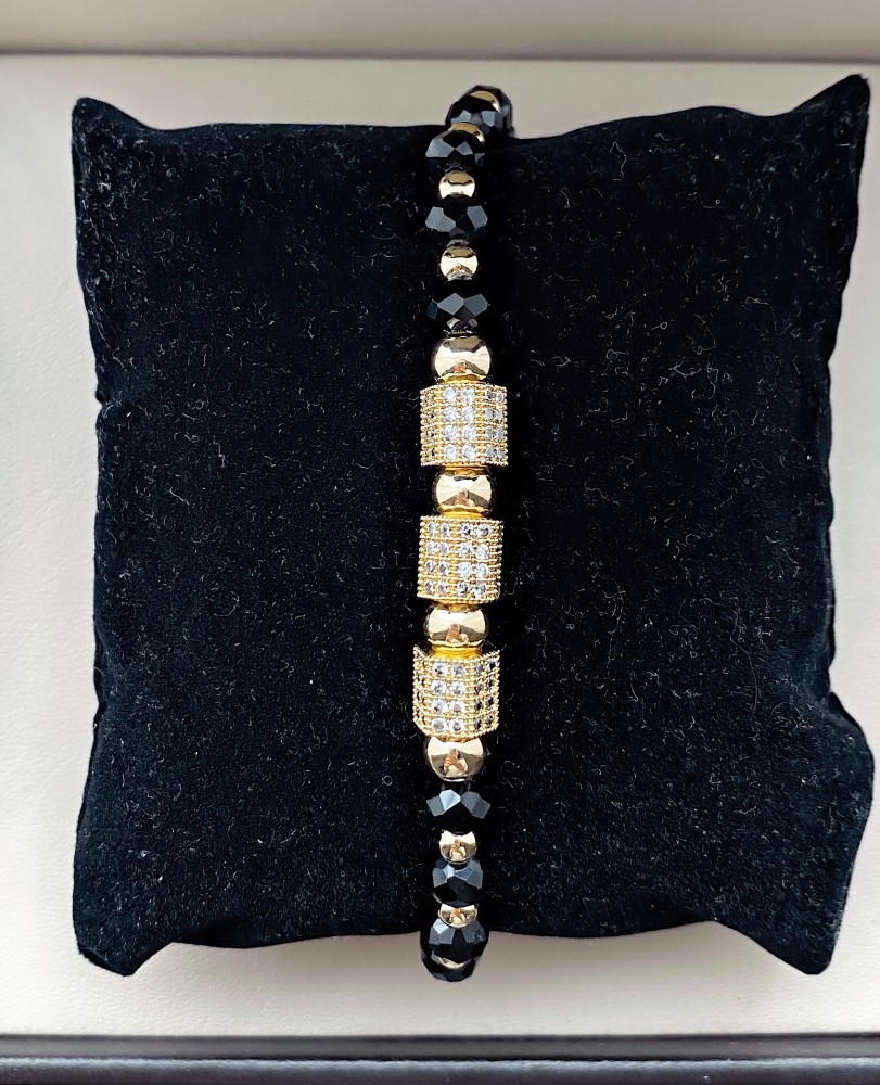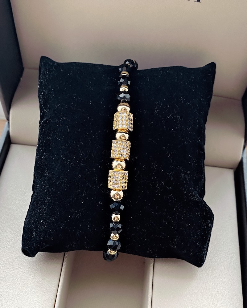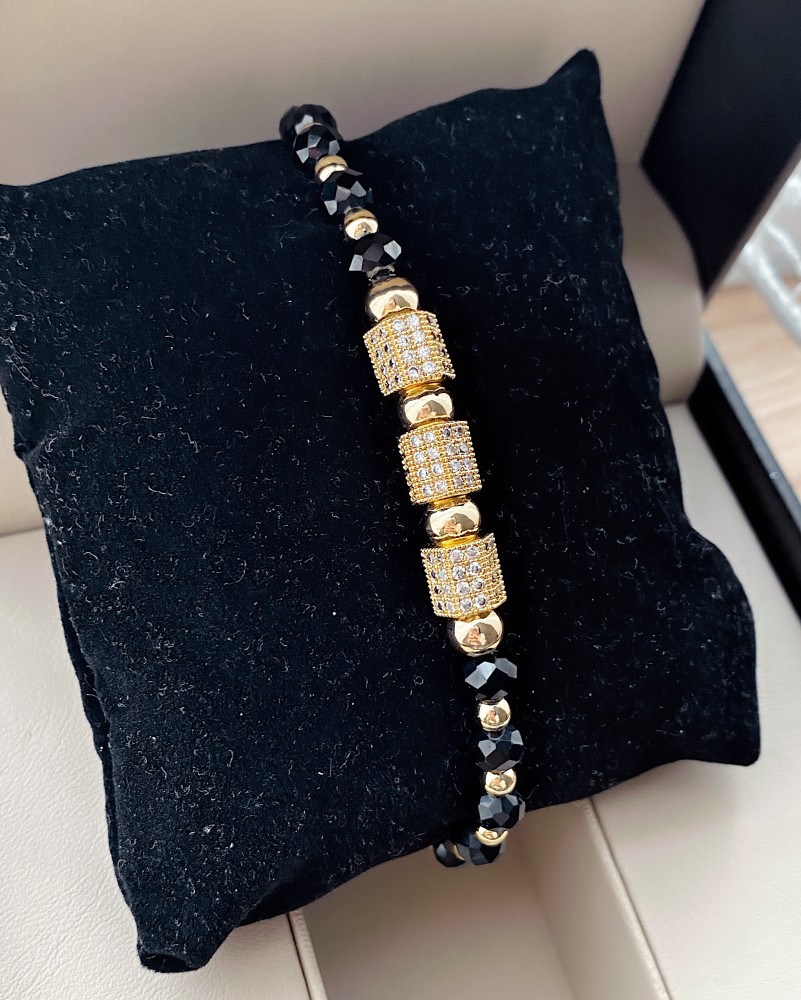 Bratara dama model deosebit cu margele negre si patrate cu pietricele stralucitoare