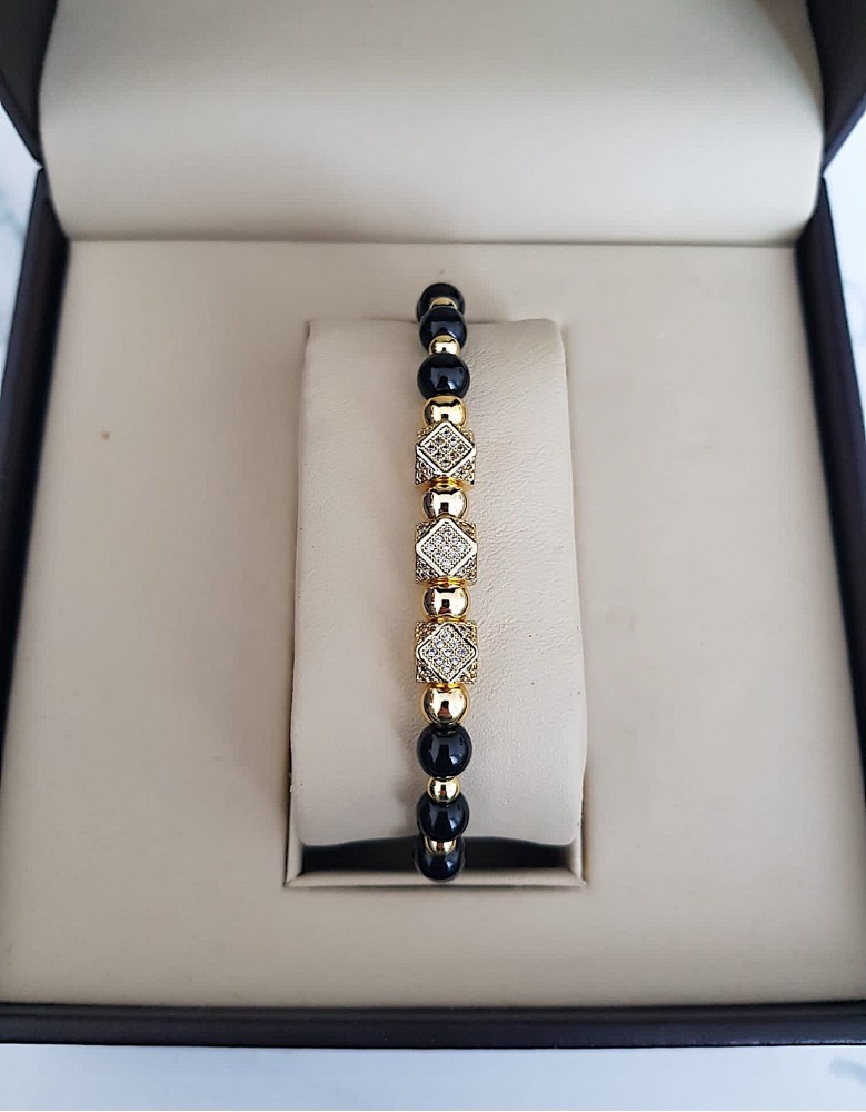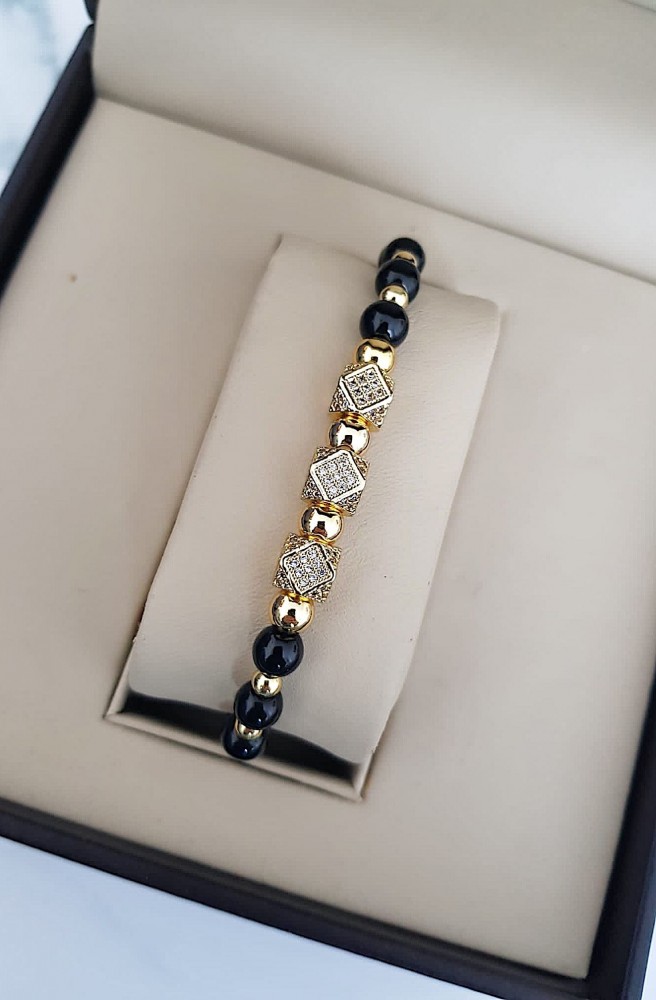 Bratara dama model deosebit cu margele negre si romburi cu pietricele stralucitoare