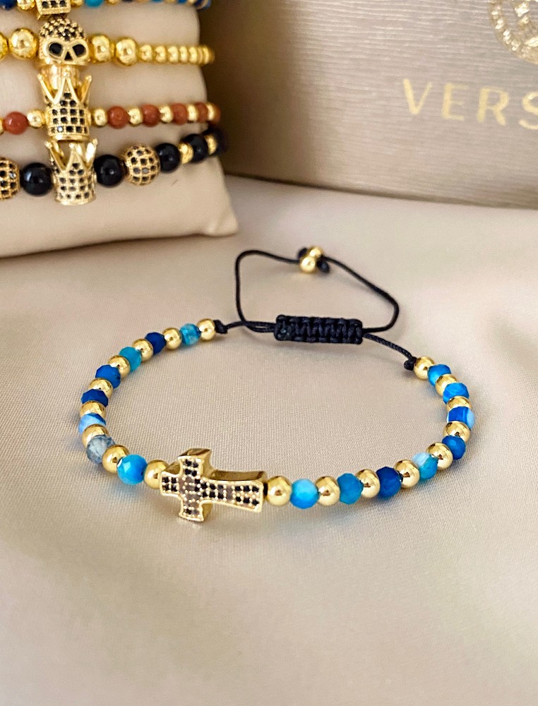 Bratara dama model deosebit cu piatra semipretioasa Agata albastra si design special cruciulita