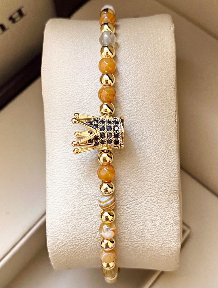 Bratara dama model deosebit cu piatra semipretioasa Ochi de tigru si design special coroana