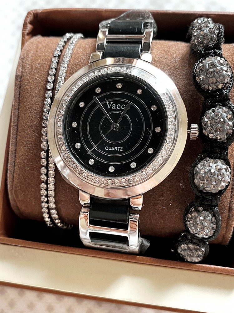 Cadranul rotund si cu pietricele ii confera o alura eleganta si sofisticata.