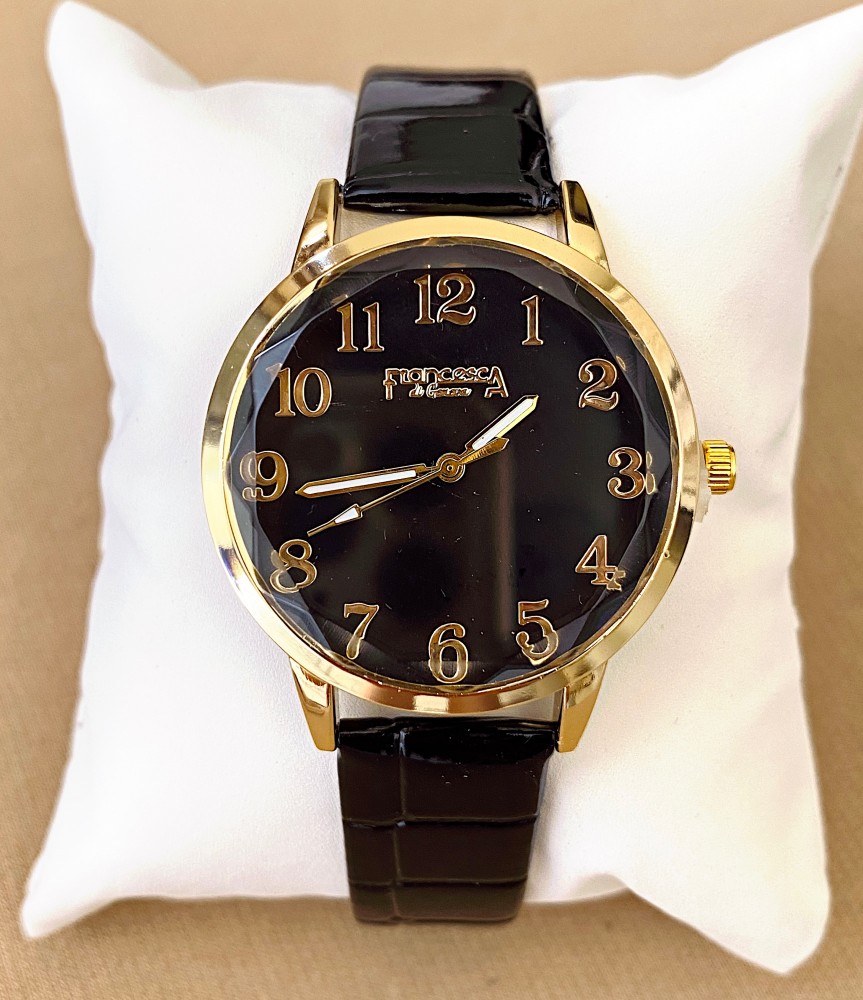 Ceas dama negru cu bratara din piele ecologica si cadran simplu