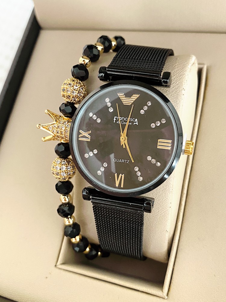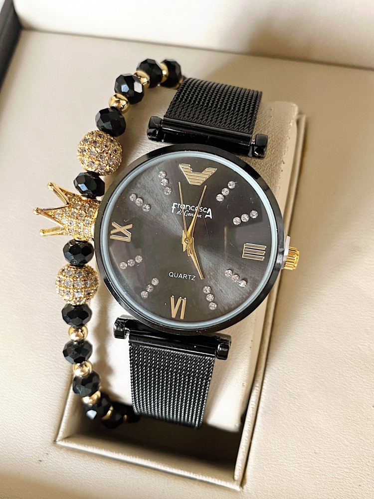 Ceas dama negru cu bratara metalica si cadran cu 4 cifre