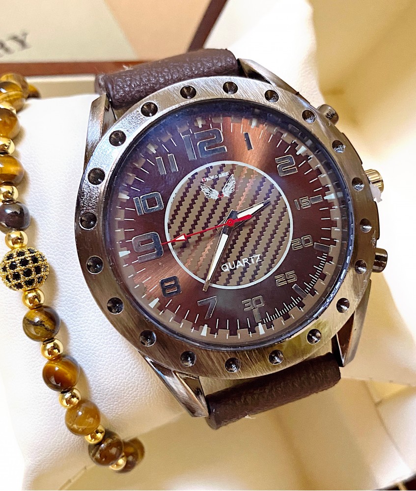 Ceas barbati maro cu bratara din piele ecologica si cadran cu cerc