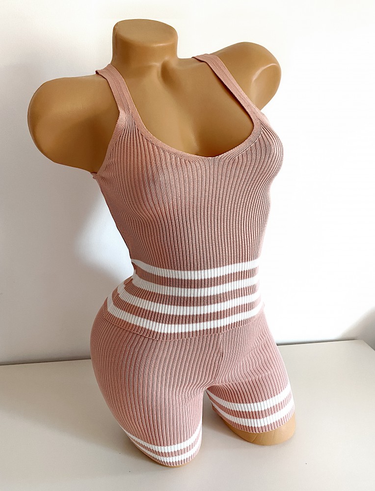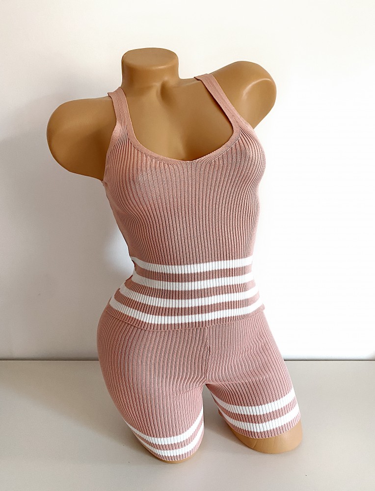 Compleu dama casual roz din tricot subtire formal din maieu si pantaloni scurti