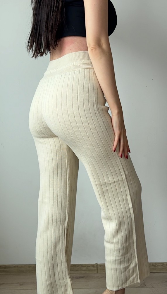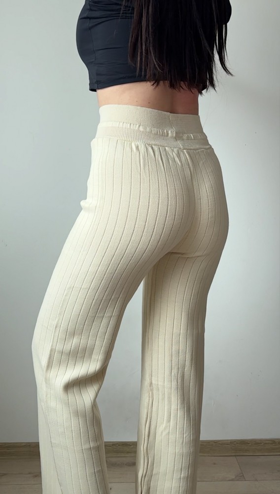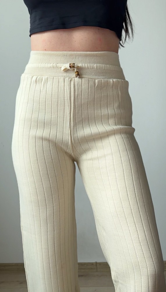 Pantaloni dama albi cu șnur, din material tricotat moale și confortabil.