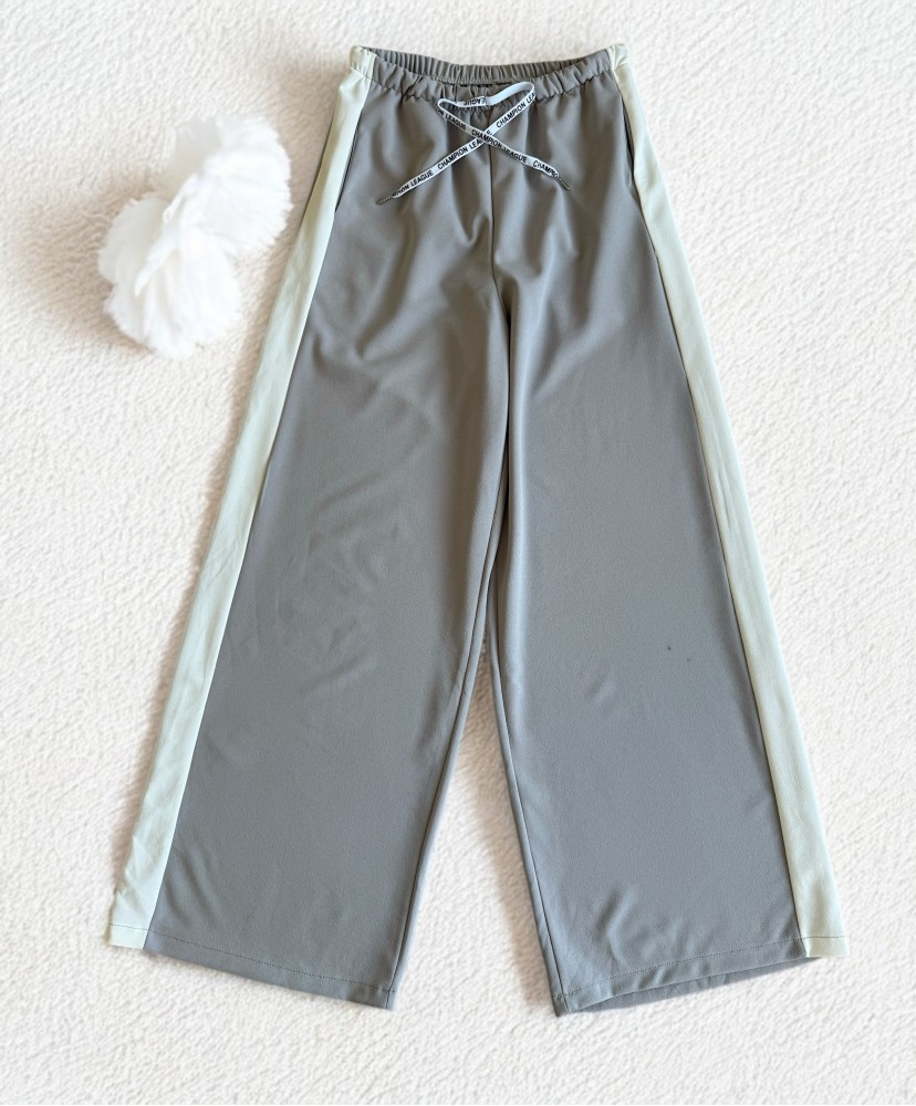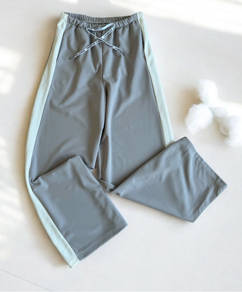 Pantaloni dama sport casual lungi cu dungi - gri
