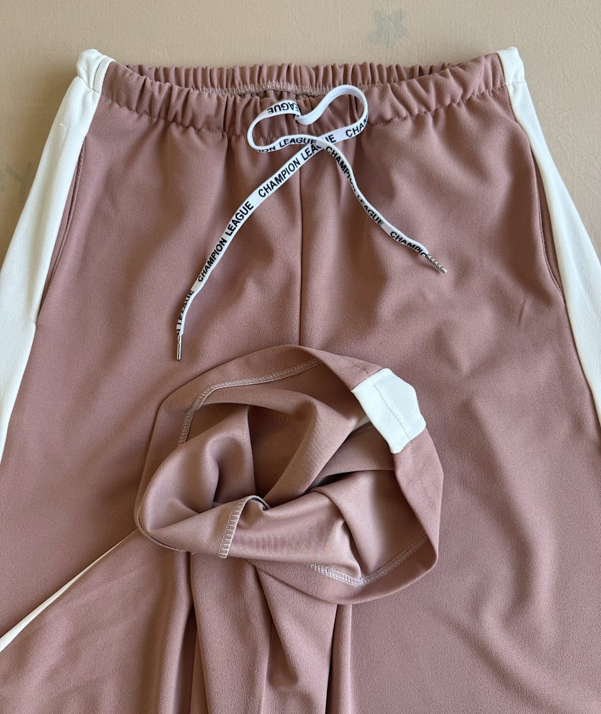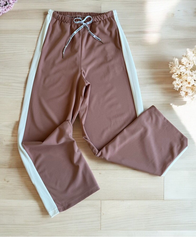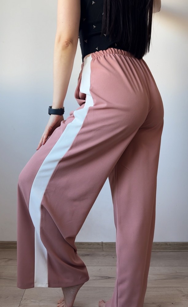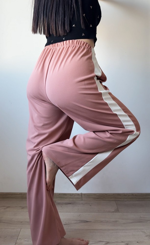 Pantaloni dama sport casual lungi cu dungi - roz pudra
