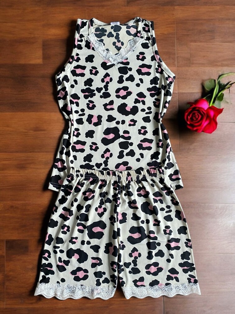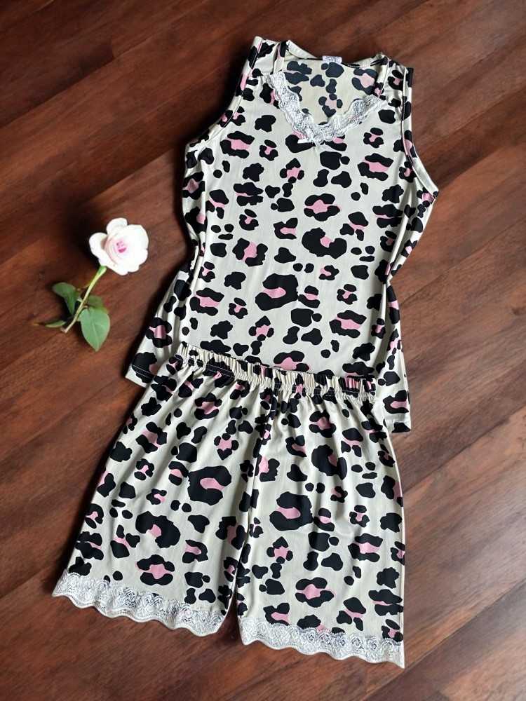 Pijamaua perfectă pentru nopți relaxate și dimineți leneșe! Cu maieu și pantaloni scurți, dintr-un mix de lycra și bumbac care se așază frumos pe corp și se simte super confortabil. Designul feminin și plăcut o face ideală pentru zilele când vrei să te simți bine… chiar și acasă!