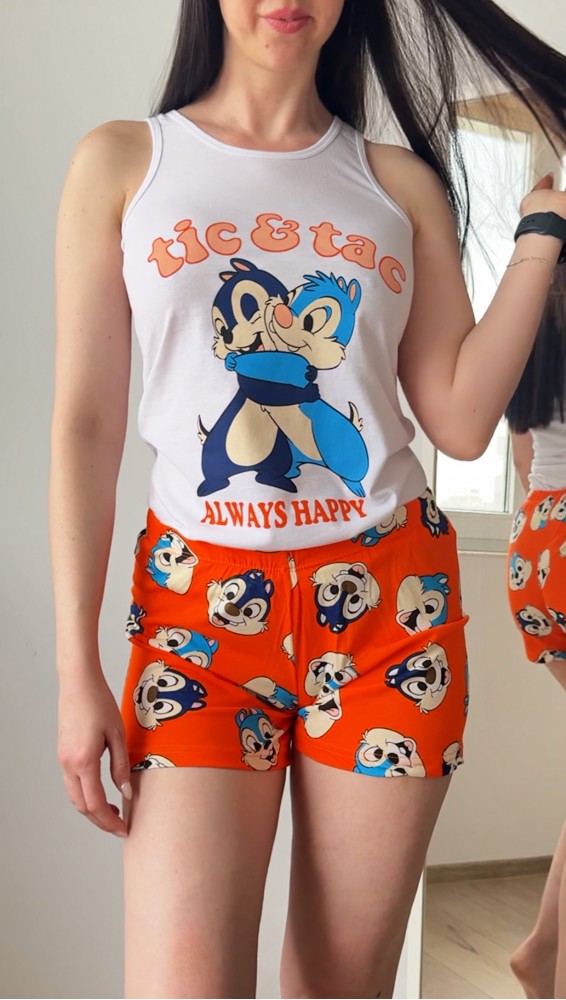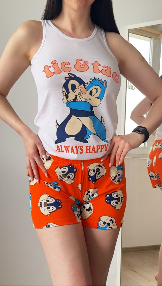 Setul din bumbac moale, cu maieu lejer și pantaloni scurți, e perfect pentru seri de relaxare, dimineți leneșe și momente în care vrei doar să te bucuri de confort.